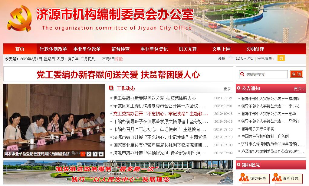 济源市机构编制委员会办公室是济源市机构编制委员会的常设办事机构,是市委、市政府负责全市行政管理体制改革、机构改革和机构编制管理的工作部门,列市委机构序列。围绕创新体制机制、服务科学发展,充分发挥综合性管理机构的作用,按照改革、管理、法制化协调推进的工作格局,切实履行推进行政管理体制改革和机构改革的职能,强化机构编制管理。通过科学配置职能、合理设置机构、完善运行机制、创新管理方式,提高行政效能,不断优化机构编制资源配置,为促进我市经济社会科学发展提供体制机制保障。其主要职责是:(一)贯彻执行党和国家有关行政管理体制改革、机构改革和机构编制管理的方针政策、法律法规;组织起草机构编制管理的规章草案,制定相关政策规定。推进机构编制管理科学化、规范化、法制化建设。(二)研究行政管理体制改革、机构改革、事业单位分类改革和相关领域涉及行政管理体制改革的重大问题;协调有关专项改革事宜。(三)拟订全市行政管理体制改革和机构改革的总体方案,经批准后组织实施;审核市委各部门、市政府各部门和各镇、街道机构改革方案,指导和协调全市机构改革及机构编制管理工作。(四)统一管理全市各级党政机关,人大、政协机关,法院、检察院机关,民主党派、人民团体和群众团体机关的机构编制工作。(五)协调市委各部门、市政府各部门的职责配置及调整,协调市委、市政府各部门之间以及市直各部门与镇、街道之间的职责分工。(六)审核市委各部门、市政府各部门,市人大、政协机关,法院、检察院机关,民主党派、人民团体和群众团体机关的主要职责、内设机构、人员编制和领导职数。(七)拟订全市事业单位管理体制改革和机构改革方案,经批准后组织实施;负责全市事业单位机构改革方案的审核和机构编制管理工作。(八)监督检查全市各级行政管理体制改革、机构改革和机构编制方针政策、法律法规的执行情况。(九)建立健全机构编制管理与财政预算、组织人事管理的配合制约机制;推进机构编制实名制管理,负责全市机关事业单位进人编制审核工作;负责全市机构编制统计工作。(十)负责全市行政审批制度改革的组织实施工作。(十一)贯彻执行事业单位登记管理政策规定和地方性法规、规章,负责全市事业单位登记管理工作。(十二)负责全市机构编制信息管理系统、电子政务和信息化建设工作。(十三)承办市委、市政府和市机构编制委员会交办的其他事项。