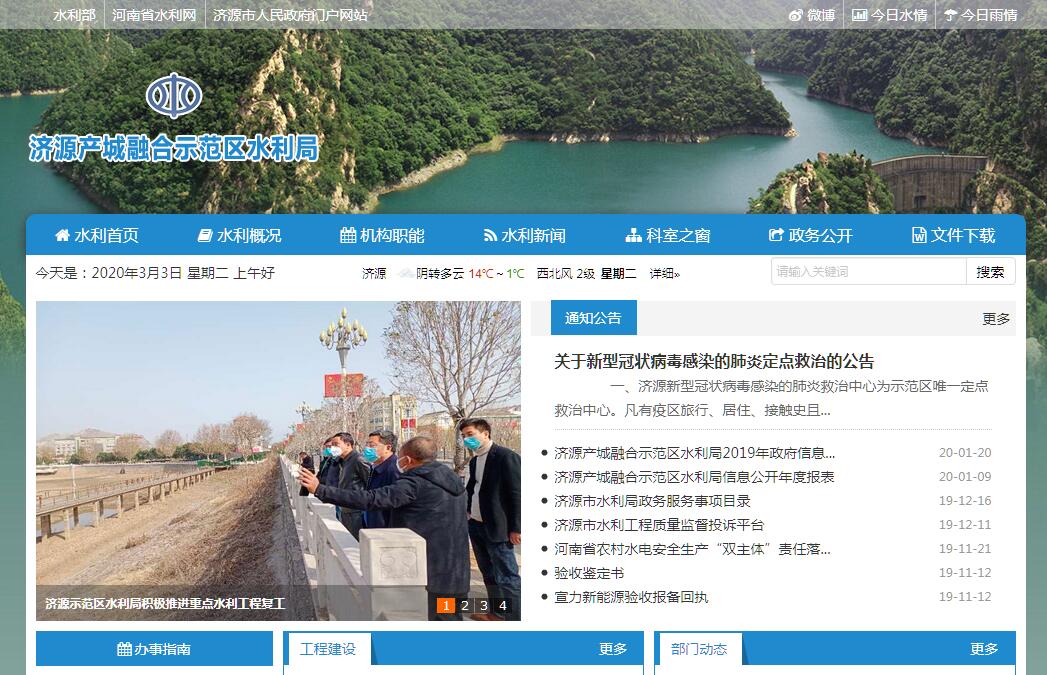 济源市水利局主要职责:(一)负责保障水资源的合理开发利用,拟订全市水利战略规划和政策,起草有关地方性规章草案并监督实施,组织编制河湖库的防洪规划和流域、区域综合规划。按规定制定水利工程建设有关制度并组织实施,负责提出水利固定资产投资规模和方向、国家、省及市财政性资金安排的意见,按规定的权限审批、核准规划内和年度计划规模内固定资产投资项目。提出水利建设投资安排建议并组织实施。(二)负责生活、生产经营和生态环境用水的统筹兼顾和保障。实施全市水资源统一监督管理,拟订全市水中长期供求规划、水量分配方案并监督实施,组织开展水资源调查评价工作,承担水能资源的调查工作,负责河湖库和重要水工程的水资源调度,组织实施取水许可、水资源有偿使用制度和水资源论证、防洪论证制度以及水资源费征收使用制度。指导水利行业和镇供水工作。(三)负责水资源保护工作。组织编制全市水资源保护规划,拟订水功能区划并监督实施,核定水域纳污能力,提出限制排污总量的建议,指导饮用水水源保护工作,指导地下水开发利用和城市规划区地下水资源管理保护工作。(四)负责防治水旱灾害,承担济源市防汛抗旱指挥部的具体工作。组织、协调、监督、指挥全市防汛抗旱工作,对河湖库和重要水工程实施防汛抗旱调度和应急水量调度,编制全市防汛抗旱应急预案并组织实施。指导水利突发公共事件的应急管理工作。(五)负责节约用水工作。拟订全市节约用水政策,编制节约用水规划,制定有关标准,组织、管理、监督节约用水工作,指导和推动节水型社会建设工作。(六)编制、审查全市大中型水利基本建设项目建议书、可行性研究报告和初步设计。(七)指导水文工作。负责协调有关部门监测全市水资源,提出全市水文站网建设和管理意见,负责协调有关部门对河湖库和地下水的水量、水质实施监测,发布水文水资源信息、情报预报和全市水资源公报。(八)负责全市水利设施、水域及其岸线的管理和保护,指导河湖库及滩地的治理和开发。指导水利工程建设与运行管理,组织实施具有控制性的或跨镇区的重要水利工程建设与运行管理。(九)负责防治水土流失。拟订全市水土保持规划并监督实施,组织实施水土流失的综合防治、监测预报并定期公告,负责有关建设项目水土保持方案的审批、监督实施及水土保持设施的验收工作,指导市重点水土保持建设项目的实施。(十)指导农村水利工作。组织协调农田水利基本建设,指导农村饮水安全、节水灌溉等工程建设与管理工作,指导农村水利社会化服务体系建设。负责农村水能资源开发工作,指导水电农村电气化和小水电代燃料工作。(十一)负责重大涉水违法事件的查处,指导全市水政监察和水行政执法,协调、仲裁并处理跨镇区水事纠纷。依法负责水利行业安全生产工作,组织、指导水库、水电站大坝的安全监管,指导水利建设市场的监督管理,组织实施水利工程建设的监督。(十二)开展全市水利科技和外事工作。指导全市水利队伍建设。组织实施水利行业质量监督工作,拟订全市水利行业的技术标准、规程规范并监督实施,承担水利统计工作。组织开展对外水利经济技术合作与交流。(十三)承办市政府交办的其他事项。