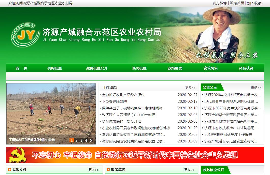 济源市农业农村局主要职责:(一)拟订全市种植业、渔业、乡镇企业等农业有关产业(以下简称农业)和农村经济发展政策、发展战略、中长期发展规划并组织实施。根据农业相关法律法规,推进农业依法行政。(二)承担完善全市农村经营管理体制的责任。贯彻落实上级农村基本经营制度政策,指导农村土地承包、耕地使用权流转工作,负责农村土地承包纠纷调解仲裁工作。指导、监督减轻农民负担和村民筹资筹劳管理工作,协助相关单位指导农村集体资产和农村财务管理的监管工作。指导、扶持农业社会化服务体系、农民专业合作社的建设与发展。(三)指导全市粮食等主要农产品生产,组织落实促进粮食等主要农产品生产发展的相关政策措施,引导农业产业结构调整和产品品质的改善。会同有关部门指导农业标准化、规模化生产。编报部门预算并组织执行。提出扶持农业农村发展的财政政策和项目建议,与市财政部门协商并共同组织实施。(四)组织拟订大宗农产品市场体系建设与发展规划。提出促进大宗农产品流通的政策建议和主要农产品的进出口建议。提出全市农业经济结构调整的意见、规划并组织实施。负责农村固定观察点工作。(五)承担提升全市农产品质量安全水平的责任。负责农产品质量安全监测,参与制定农产品质量安全标准并会同有关部门组织实施。指导农业检验检测体系建设。依法实施符合安全标准的农产品认证和监督管理。组织监督管理农产品质量安全。(六)组织、协调全市农业生产资料市场体系建设。依法开展对农作物种子(种苗)、农药的许可及监督管理。依法负责对渔船、渔机、网具的监督管理。拟订有关农业生产资料地方标准并会同有关部门监督实施。负责对有关肥料的登记管理。(七)负责全市农作物重大病虫害防治。指导植物防疫和检疫体系建设。组织、监督对国内植物的防疫检疫工作,发布疫情并组织扑灭。组织植物检疫性有害生物普查。(八)承担农业防灾减灾的责任。提出生产救灾资金安排建议,指导紧急救灾和灾后生产恢复。(九)负责全市农业信息体系建设,监测分析农业经济运行。开展相关农业统计,发布农业和农村经济信息,指导农业信息服务工作。(十)拟订全市农业科技、教育、农技推广的规划、计划和有关政策并组织实施。会同有关部门组织全市农业科技创新体系和农业产业技术体系建设,实施科教兴农战略,组织实施农业领域的高新技术和应用技术研究、农业科技成果转化和技术推广。负责农业科技成果管理,指导农技推广体系改革与建设。负责农业植物新品种保护,负责农业转基因生物生产加工的申报审核等管理工作。(十一)会同有关部门拟订全市农业农村人才队伍建设规划并组织实施,指导农业教育和农业职业技能开发工作,参与实施农村实用人才培训工程。承担农村劳动力转移就业培训工作,会同有关部门依法实施农业农村人才专业技术资格和从业资格管理。(十二)组织全市农业资源区划工作,指导农用地、渔业水域、宜农滩涂、宜农湿地以及农业生物物种资源的保护和管理,负责水生野生动植物保护工作。拟订耕地及基本农田质量保护与改良政策并指导实施,依法管理耕地质量。运用工程设施、农艺、生物等措施发展节水农业。会同有关部门处理渔事纠纷,行使渔船检验和渔政、渔港监督管理权。(十三)制定并实施全市农业生态建设规划,指导农村可再生能源综合开发与利用,指导农业生物质产业发展和农业农村节能减排,承担指导农业面源污染治理有关工作。划定农产品禁止生产区域,指导生态农业、循环农业等的发展。负责保护渔业水域生态环境。牵头管理外来物种。(十四)承担政府间农业涉外事务。(十五)承办市政府交办的其他事项。