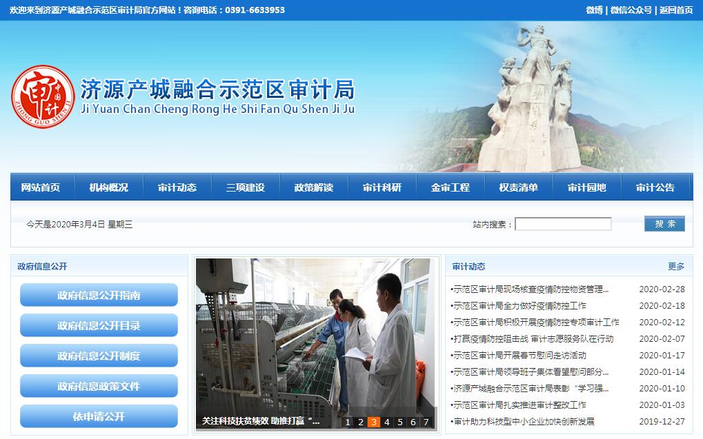 济源市审计局成立于1984年6月,为市政府工作部门,是市政府的审计机关。其主要职责如下:(一)主管全市审计工作。负责对全市财政收支和法律、法规规定属于审计监督范围的财务收支的真实、合法和效益进行审计监督,维护财政经济秩序,提高财政资金使用效益,促进廉政建设,保障国民经济和社会健康发展。对审计、专项审计调查和核查社会审计机构相关审计报告的结果承担责任,负有督促被审计单位整改的责任。(二)参与起草地方性的审计、财经方面的规范性文件,制定审计规章制度并监督执行,制定并组织实施审计工作发展规划和专业领域审计工作规划,制定并组织实施年度审计计划。对直接审计、调查和核查的事项依法进行审计评价,作出审计决定或提出审计建议。(三)向市政府提交年度市级预算执行和其他财政收支的审计结果报告。受市政府委托向市人大常委会提交市级预算执行和其他财政收支情况的审计工作报告、审计发现问题的纠正和处理结果报告。向市政府报告其他事项专项审计调查情况及结果。依法向社会公布审计结果。(四)编制政府投资建设项目年度审计计划,报市政府批准并组织实施。政府投资建设项目年度审计计划及其根据实际情况作出调整的,应当报市人大常委会备案。负责审计政府投资和以政府投资为主的建设项目的预算执行情况和决算。负责对与政府投资建设项目直接有关的设计、施工、供货等单位取得建设项目资金的真实性、合法性进行调查。(五)直接审计下列事项,出具审计报告,在法定职权范围内作出审计决定或向有关主管机关提出处理处罚建议:1.市级预算执行情况和其他财政收支。市直各部门(含直属单位)预算执行情况、决算和其他财政收支。省级财政转移支付资金。2.产业集聚(开发)区、镇、街道财政预算的执行情况、决算和其他财政收支。3.使用财政资金的事业单位和社会团体的财务收支。4.国有企业和金融机构、市政府规定的国有资本占控股或主导地位的企业和金融机构的资产、负债和损益。5.市政府部门管理的和受市政府及其部门委托管理的社会保障基金、资源能源和环境保护资金、社会捐赠资金及其他有关基金、资金的财务收支。6.国际组织和外国政府援助、贷款项目的财务收支。7.法律、行政法规和地方性法规规定应由审计机构审计的其他事项。(六)按规定对市管领导干部及依法属于审计监督对象的其他单位主要负责人实施经济责任审计。(七)负责对财经法律、法规、规章、政策和宏观调控措施执行情况、财政预算管理或国有资产管理使用等与财政收支有关的特定事项进行专项审计调查。(八)依法检查审计决定执行情况,督促纠正和处理审计发现的问题,依法办理被审计单位对审计决定提请行政复议、行政诉讼或市政府裁决的有关事项。协助有关部门查处相关重大案件。(九)指导和监督依法属于审计监督对象的单位的内部审计工作,核查社会审计机构对依法属于审计监督对象的单位出具的相关审计报告。(十)组织审计市政府驻外非经营性机构的财务收支,依法通过适当方式组织审计市属国有企业和金融机构的境外资产、负债和损益。(十一)在全市审计领域指导和推广信息技术应用,参与建设国家审计信息系统。(十二)承办市政府交办的其他事项。