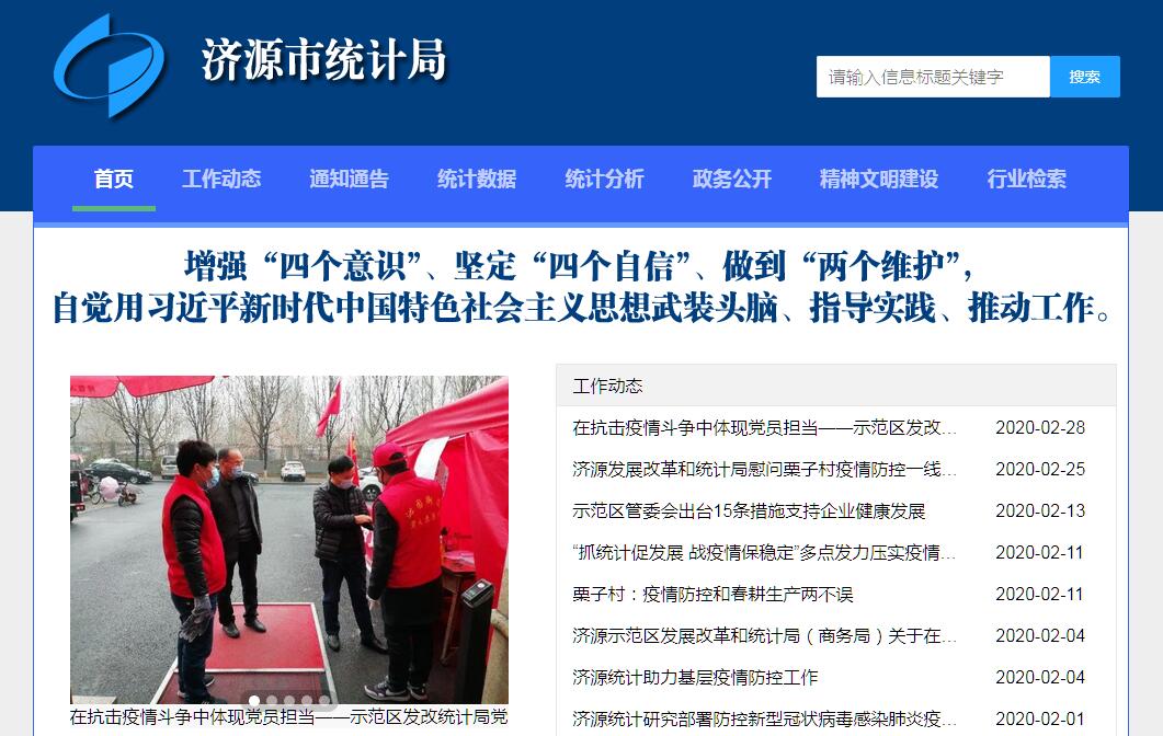 济源市统计局主要职责:(一)承担组织领导和协调全市统计工作,确保统计数据全面、准确、及时;贯彻执行国家、省统计政策、规划、基本统计制度和统计标准,制定地方统计制度和统计标准;贯彻执行国家、省统计法律、法规及规章,制定部门规范性文件;指导全市统计工作。(二)贯彻执行国家、省国民经济核算制度,建立健全全市国民经济核算体系和统计指标体系,监督管理各镇、街道国民经济核算工作。(三)会同有关部门贯彻落实全国重大国情国力普查计划、方案,组织实施全市人口、经济、农业等国情国力普查和投入产出调查等大型专项调查,汇总、整理和提供有关国情国力方面的统计数据。(四)组织实施农林牧渔业、工业、建筑业、批发和零售业、住宿和餐饮业、房地产业、租赁和商务服务业、居民服务和其他服务业、能源、投资、科技、人口、劳动力、社会发展基本情况、环境基本状况、文化体育和娱乐业以及装卸搬运和其他运输服务业、仓储业、计算机服务业、软件业、科技交流和推广服务业、社会福利业等统计调查,收集、汇总、整理和提供有关调查的统计数据。综合整理和提供地质勘查、旅游、交通运输、资源、房屋、对外贸易、对外经济、邮政、教育、卫生、社会保障、公用事业等全市性基本统计数据。(五)组织各镇、街道、市政府各部门的经济、社会、科技和资源环境统计调查;统一核定、管理、公布全市性基本统计资料,定期发布全市国民经济和社会发展情况的统计信息;组织实施重要的统计监测评价考核和社情民意调查。(六)对国民经济、社会发展、科技进步和资源环境等情况进行统计分析、统计预测和统计监督,向市委、市政府及有关部门提供统计信息和咨询建议。(七)依法审批或者备案市级各部门统计调查项目、地方统计调查项目;指导专业统计基础工作、统计基层业务基础建设;组织建立全市服务业统计信息共享制度和发布制度;建立健全统计数据质量审核、监控和评估制度,开展对重要统计数据的审核、监控和评估;依法监督管理涉外调查活动。(八)指导全市统计专业技术队伍建设,参与组织管理全市统计专业资格考试和从业资格认定工作;监督管理由中央财政、省财政和市财政提供的统计经费和专项基本建设投资。(九)建立并管理全市统计信息自动化系统和统计数据库系统,组织制定各镇、街道、市政府各部门统计数据库和网络的基本标准运行规则;指导各镇、街道统计信息化系统建设。(十)承办市政府交办的其他事项。
