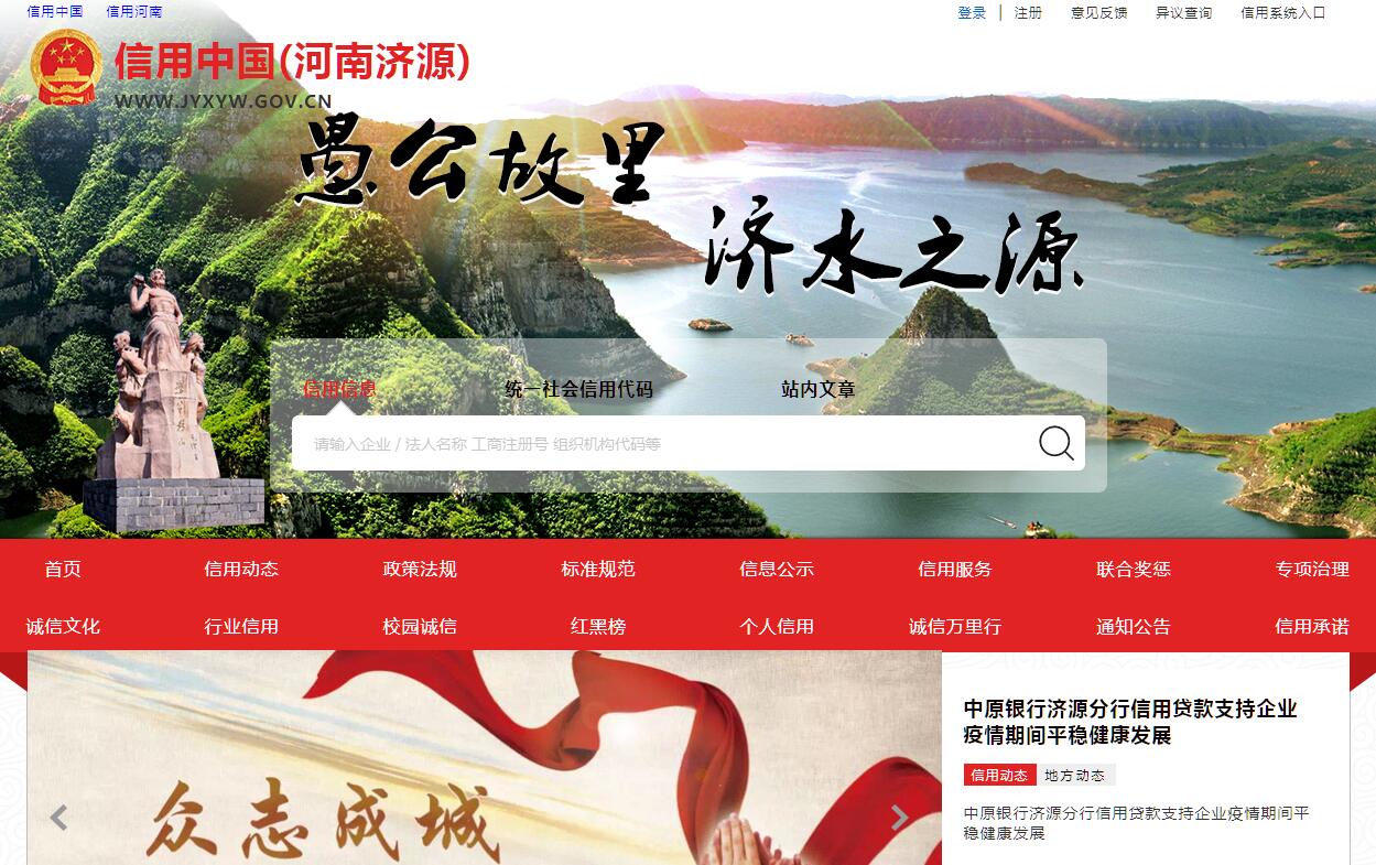 | 网站简介: “信用济源”网站(以下简称网站)是政府褒扬诚信、惩戒失信的窗口,主要承担信用宣传、信息发布等工作,使用社会信用体系建设部际联席会议成员单位提供的对社会公开的信用信息。网站由济源市信用体系建设领导小组指导,济源市信用办主办。 |