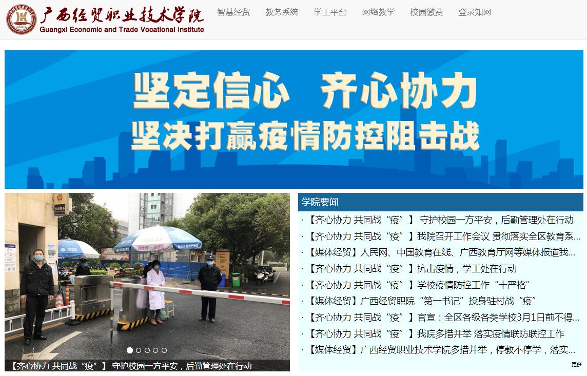 广西经贸职业技术学院是2004年由自治区人民政府批准成立的公办全日制普通高等职业院校,隶属自治区供销合作联社。学院现有:青山、长岗、五合(在建)三个校区,全日制高职在校生8893人,教职工348人,拥有高级职称64人,中级职称198人 ,“双师型”教师147人,3人入选广西“十百千”拔尖会计人才。另外还聘任了一批兼职教授、企业高管及能工巧匠等充实教学及科研队伍。学院设有贸易与管理系、财会金融系、信息工程系、旅游与外语系、艺术设计与建筑管理系等7个教学系部,构建以商贸类专业为核心,以服务农村现代流通为特色的专业发展格局,重点建设财会金融、现代流通、商务信息化、艺术设计和旅游服务五大专业群,开设电子商务、服装与服饰设计、会计、烹调工艺与营养、市场营销等36个高职专业。学院遵循“立德弘商、兴贸致远”的校训,形成了“秉商崇商、学商精商、为商研商、融商弘商”的办学理念,凝炼了“商学合一、德才双馨”的人才培养理念,扎根桂商文化沃土,服务广西经济社会发展,取得了丰硕的办学成果。学院获国家级教学成果奖二等奖2项,自治区级教学成果奖10项,中央财政支持专业4个,广西高等学校特色专业及课程一体化建设项目3个,广西高等学校优势特色专业建设点6个,自治区示范性高等职业教育实训基地3个,获得各类荣誉100多项。学院已成为广西应用型本科人才产教融合协同培养试点院校,与全球人工智能领军企业科大讯飞等知名企业共建“产业学院”。