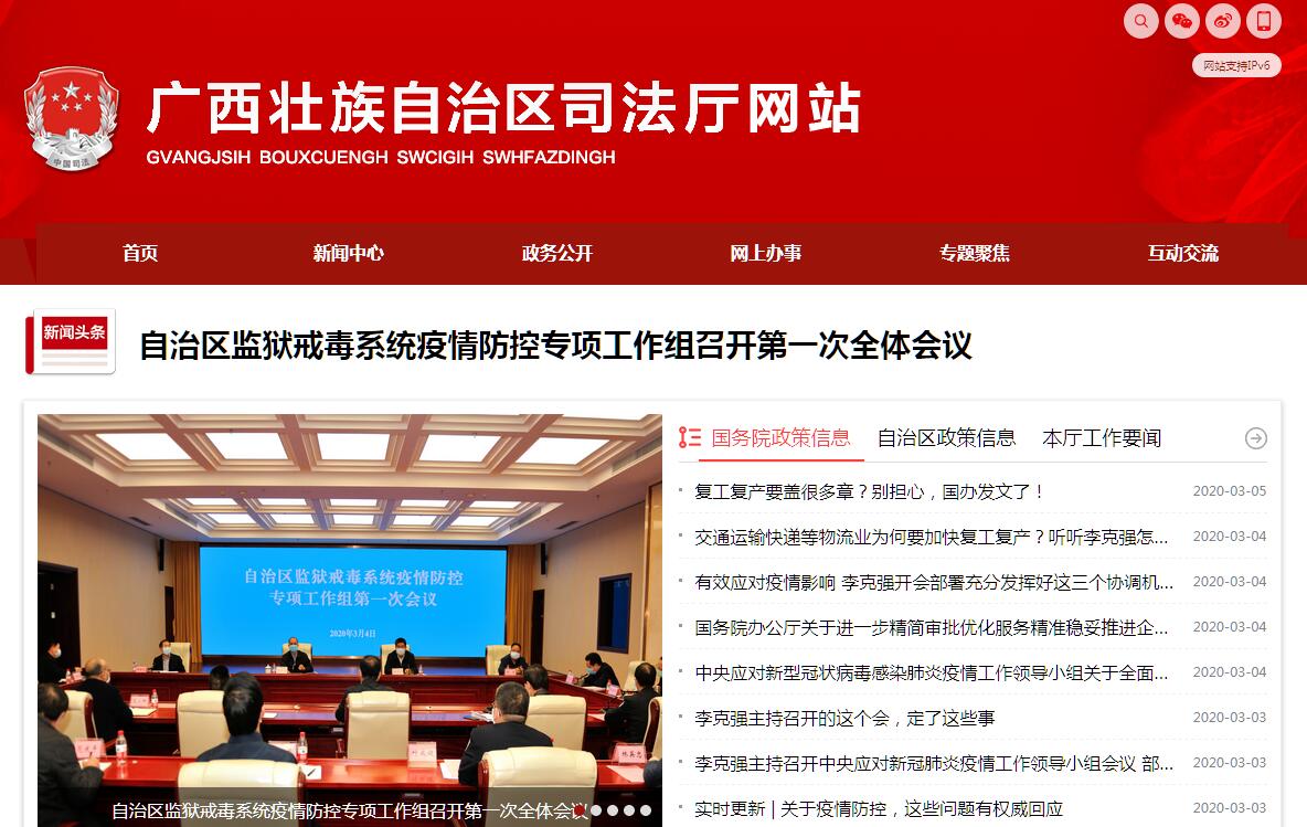 广西壮族自治区司法厅是自治区人民政府组成部门,为正厅级;自治区党委全面依法治区委员会办公室设在自治区司法厅;自治区司法厅负责贯彻落实党中央关于全面依法治国和自治区党委关于全面依法治区的方针政策和决策部署,在履行职责过程中坚持和加强党对全面依法治区的集中统一领导。其主要职责是:(一)承担全面依法治区重大问题的政策研究,协调有关方面提出全面依法治区中长期规划建议,负责有关重大决策部署督察工作。(二)承担统筹规划立法工作的责任。协调有关方面提出立法规划和年度立法工作计划的建议,负责跟踪了解区直部门对立法工作计划的落实情况,加强组织协调和督促指导,研究提出立法与改革决策相衔接的意见、措施。负责面向社会征集地方性法规及政府规章制定项目建议。指导设区的市人民政府的立法工作。(三)负责起草或者组织起草有关地方性法规、政府规章草案。承办区直部门报送自治区人民政府的地方性法规、政府规章草案的审查工作。承办法律、法规和国家部门规章草案征求意见的答复工作。负责立法协调。(四)承办自治区人民政府规章的立法解释、立法后评估工作。负责协调各地区各部门实施法律法规规章中的有关争议和问题。承办自治区人民政府规章清理、编纂工作,组织翻译、审定政府规章外文正式译本。组织自治区本级及设区的市开展政府规章清理工作。承办自治区人民政府规章呈报国务院和自治区人大常委会备案事宜。(五)负责对自治区人民政府拟出台的规范性文件以及需要自治区人民政府批准的区直部门规范性文件的合法性审查。承办政府法律事务工作。办理设区的市人民政府规章和规范性文件、区直部门的规范性文件备案审查工作。指导设区的市人民政府规范性文件合法性审查和政府法律事务工作。(六)承担统筹推进法治政府建设的责任。指导、监督区直部门和设区的市、县(市、区)、乡(镇)人民政府依法行政工作。负责综合协调行政执法,承担推进行政执法体制改革有关工作,推进严格规范公正文明执法。(七)承办向自治区人民政府申请的行政复议、行政赔偿案件。承办自治区人民政府的行政应诉案件。承办因不服自治区人民政府行政复议决定依法向国务院申请裁决案件的答复工作。指导、监督全区行政复议和行政应诉工作。(八)承担统筹规划全区法治社会建设的责任。负责拟订法治宣传教育规划,组织实施普法宣传工作,组织对外法治宣传。推动人民参与和促进法治建设。指导依法治理和法治创建工作。指导调解工作和人民陪审员、人民监督员选任管理工作,推进司法所建设。(九)负责管理、指导、监督监狱工作。指导、管理社区矫正工作。指导刑满释放人员帮教安置工作。(十)负责司法行政戒毒场所管理工作。指导、监督本系统强制隔离戒毒执行和戒毒康复工作。对社区戒毒和社区康复工作提供指导、支持和协助。(十一)负责拟订公共法律服务体系建设规划并指导实施,统筹和布局城乡、区域法律服务资源。指导、监督律师、法律援助、司法鉴定、公证、仲裁和基层法律服务管理工作。(十二)负责全区国家统一法律职业资格考试的组织实施工作。负责全区国家统一法律职业资格和证书管理工作。负责规划和指导全区法律职业人员入职前培训工作。(十三)负责自治区法治对外合作工作。组织开展法治对外合作交流。承办自治区涉港澳台法律事务。(十四)负责本系统枪支、弹药、服装和警车管理工作,指导、监督本系统财务、装备、设施、场所等保障工作。(十五)规划、协调、指导法治人才队伍建设相关工作,指导、监督本系统队伍建设。负责本系统警务管理和警务督察工作。协助设区的市管理司法局领导干部。(十六)管理自治区监狱管理局。(十七) 完成自治区党委、自治区人民政府交办的其他任务。