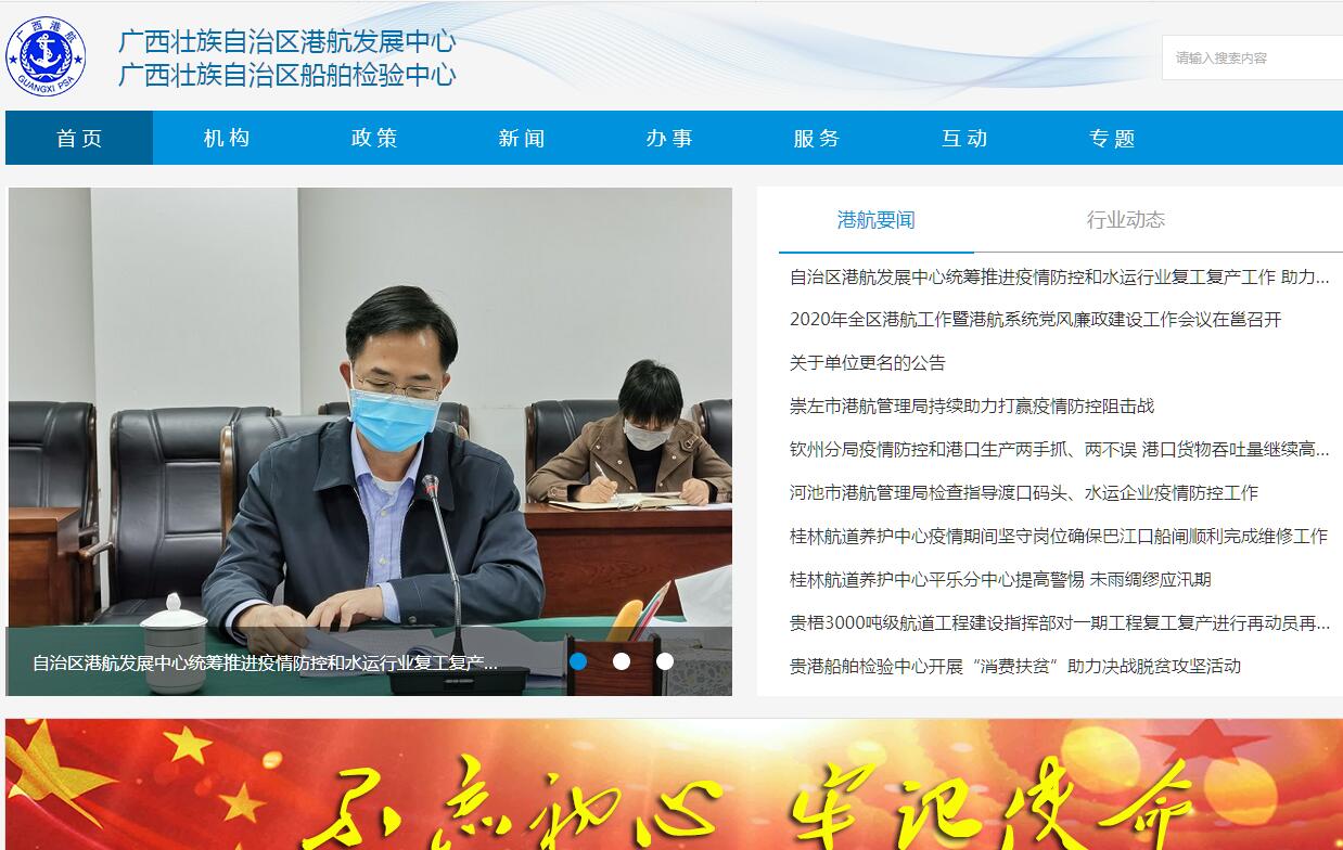 广西壮族自治区港航发展中心(广西壮族自治区船舶检验中心),实行一个机构、两块牌子,为公益一类事业单位,实行自治区交通运输厅、自治区北部湾经济区规划建设管理办公室双重管理、以自治区交通运输厅管理为主的管理体制。其主要职责是:一、贯彻执行国家和自治区有关港口、航道、水路运输、船舶检验的方针政策和法律法规,行业规划和标准;起草有关港口、航道、水路运输的地方性法规、规章。二、组织编制北部湾港口规划和港口章程,拟订全区内河航道、内河港口布局、水路运输规划及其它相关规划。三、承担北部湾港口公共基础设施规划、建设和管理工作;负责北部湾港口经营许可管理和行政执法工作;负责引航业务、内河港口经营市场监督管理;承担港口设施使用岸线审核工作;承担北部湾港口工程项目建设的监督管理。四、承担全区水路运输管理工作;承担水路运输行业执法工作;承担自治区授权管辖的内河通航河流航道及航道设施的管理工作。五、拟订地方性船舶检验有关政策和检验技术规定;实施全区船舶、船用产品、海上设施、船运货物集装箱法定检验的监督管理工作;承担渔船检验相关职责。六、负责港口、航道、水路运输信息化建设和统计工作;负责水路行业环境保护、科技开发和节能减排工作。七、承担港口、航道、水路运输安全生产和应急管理工作;承担军事、交通战备涉及水路交通运输的相关工作。八、负责涉及港口、航道、水路运输等政府非税收入征缴、专项资金管理工作;负责本局及直属事业单位国有资产监督管理工作。九、承担自治区交通运输厅、自治区北部湾经济区规划建设管理办公室交办的其他事项。