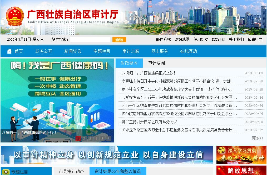 广西壮族自治区审计厅主要职责:(一)主管全区审计工作。负责对国家、自治区财政收支和法律法规规定属于审计监督范围的财务收支的真实、合法和效益进行审计监督,对公共资金、国有资产、国有资源和领导干部履行经济责任情况实行审计全覆盖,对领导干部实行自然资源资产离任审计,对国家、自治区重大政策措施贯彻落实情况进行跟踪审计。对审计、专项审计调查和核查社会审计机构相关审计报告的结果承担责任,并负有督促被审计单位整改的责任。(二)起草有关自治区审计的地方性法规、地方政府规章草案,拟订全区审计政策,制定自治区有关审计指南并监督执行。制定并组织实施专业领域审计工作规划。参与起草财政经济及其相关地方性法规、地方政府规章草案。对直接审计、调查和核查的事项依法进行审计评价,作出审计决定或提出审计建议。(三)向自治区党委审计委员会提出年度预算执行和其他财政收支情况审计情况报告。向自治区主席提出年度预算执行和其他财政收支情况审计结果报告。受自治区人民政府委托向自治区人大常委会提出自治区预算执行和其他财政收支情况的审计工作报告、审计查出问题整改情况报告。向自治区党委、自治区人民政府报告对其他事项的审计和专项审计调查情况及结果。依法向社会公布审计结果。向自治区党委和自治区人民政府有关部门、设区的市党委和人民政府通报审计情况和审计结果。(四)直接审计下列事项,出具审计报告,在法定职权范围内作出审计决定。包括:国家和自治区有关重大政策措施贯彻落实情况;自治区本级预算执行情况和其他财政收支,自治区各机关各部门(含直属单位)预算执行情况、决算草案和其他财政收支;设区的市人民政府预算执行情况、决算草案和其他财政收支,中央和自治区财政转移支付资金;使用自治区财政资金的事业单位和社会团体的财务收支;自治区投资和以自治区投资为主的建设项目的预算执行情况和决算,自治区重大公共工程项目的资金管理使用和建设运营情况;自然资源管理、污染防治和生态保护与修复情况;自治区国有企业和金融机构、自治区国有资本产占控股或主导地位的企业和金融机构境内外资产、负债和损益,自治区驻外非经营性机构的财务收支;有关社会保障基金、社会捐赠资金和其他基金、资金的财务收支;国际组织和外国政府援助、贷款项目;法律法规规定的其他事项。(五)按规定对自治区党委管理的党政主要领导干部及其他单位主要负责人实施经济责任审计和自然资源资产离任审计。(六)组织实施对国家财经法律、法规、规章、政策和宏观调控措施执行情况、财政预算管理及国有资产管理使用等与国家财政收支有关的特定审计事项进行专项审计调查。(七)依法检查审计决定执行情况,督促整改审计查出的问题,依法办理被审计单位对审计决定提请行政复议、行政诉讼或自治区人民政府裁决中的有关事项,协助配合有关部门查处相关重大案件。(八)指导和监督全区内部审计工作,核查社会审计机构对依法属于审计监督对象的单位出具的相关审计报告。(九)与各设区的市党委和人民政府共同领导设区的市的审计机关。依法领导和监督各市县审计机关的业务,组织实施特定项目的专项审计或审计调查,纠正或责成纠正各市县审计机关违反国家规定作出的审计决定。按照干部管理权限共同管理设区的市的审计机关领导班子成员。(十)组织开展审计领域的区内外交流与合作,指导和推广信息技术在审计领域的应用。(十一) 完成自治区党委、自治区人民政府交办的其他任务。