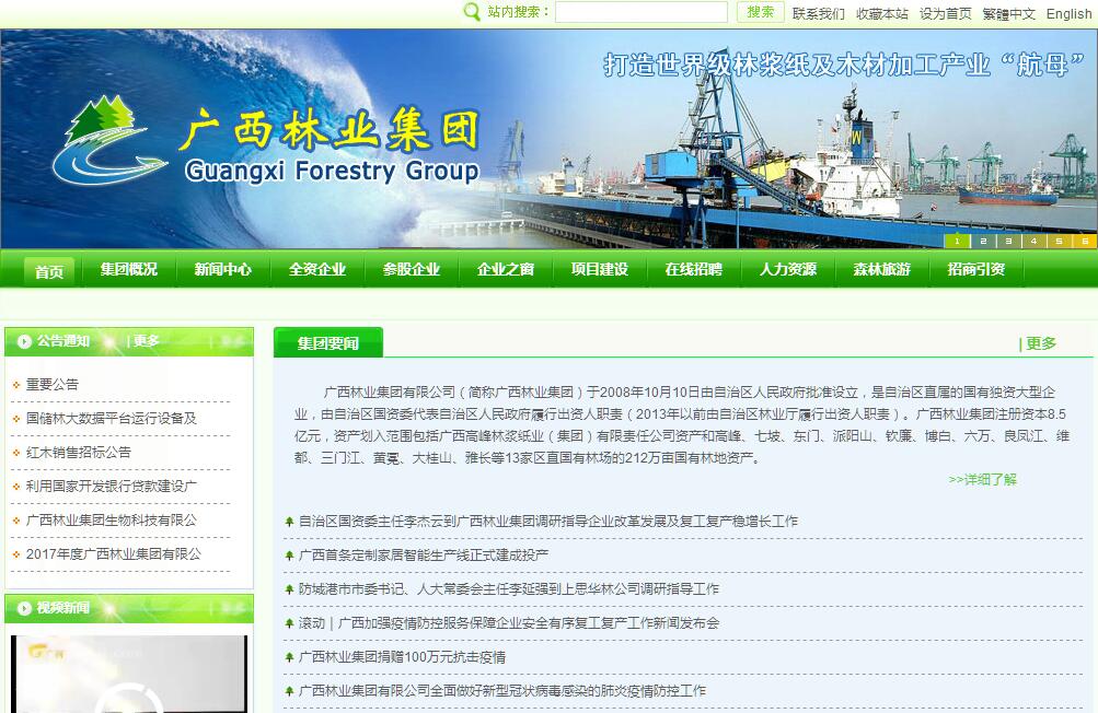 广西林业集团有限公司(简称林业集团)于2008年10月10日由自治区人民政府批准设立,是自治区直属的国有独资大型企业。林业集团注册资本8.5亿元,资产划入范围包括广西高峰林浆纸业(集团)有限责任公司资产和高峰、七坡、东门、派阳山、钦廉、博白、六万、良凤江、维都、三门江、黄冕、大桂山、雅长共13家区直国有林场的212万亩国有林地资产。按照自治区党委、自治区人民政府的决策部署,林业集团是建设广西国家储备林基地项目(简称国储林项目)的统一融资平台,主要承担沿海林浆纸一体化项目建设、国储林项目建设以及发展林业产业、建设林业生态的任务,肩负着打造广西林业企业龙头,做强做优做大林业产业,打造世界级林浆纸“航母”,促进广西造纸与木材加工千亿元产业发展的重任。经过几年发展,林业集团业务从单一的营造林、人造板加工,发展到现在涵盖林业的一、二、三产。其中林业一产包括森林资源培育,现拥有46万亩租赁林地。二产包括林浆纸一体化、林板一体化;三产包括林业物流、林业金融、林业贸易、森林旅游、森林食品等,形成了主业突出、全产业链的一体化发展格局。目前,林业集团旗下拥有二级公司20家、三级公司15家;林业集团资产总额96.65亿元。林业集团全面贯彻落实党的十九大精神,聚焦主业,坚持主动服务国家、自治区经济社会发展大局,坚持围绕营造“三大生态”、实现“两个建成”精准发力,深入实施“强一接二连三林业全产业链融合”林业产业战略,“产融结合”“双轮驱动”战略,将林业集团打造成引领我区林业产业发展的“航母”,打造成我区实施绿色发展战略的独特力量,打造成全国一流并具重要影响力的现代林业综合示范集团,全力促进广西林业产业转型升级,做强做优做大林业集团。到2020年,林业集团经营林地面积达300万亩以上,资产总量、年营业收入实现“双百亿元”目标,年利润超过2亿元。逐步建成广西林业的产业支撑和“主力军”,努力打造全国现代林业综合示范企业的标杆和世界级林浆纸及木材加工产业航母。
