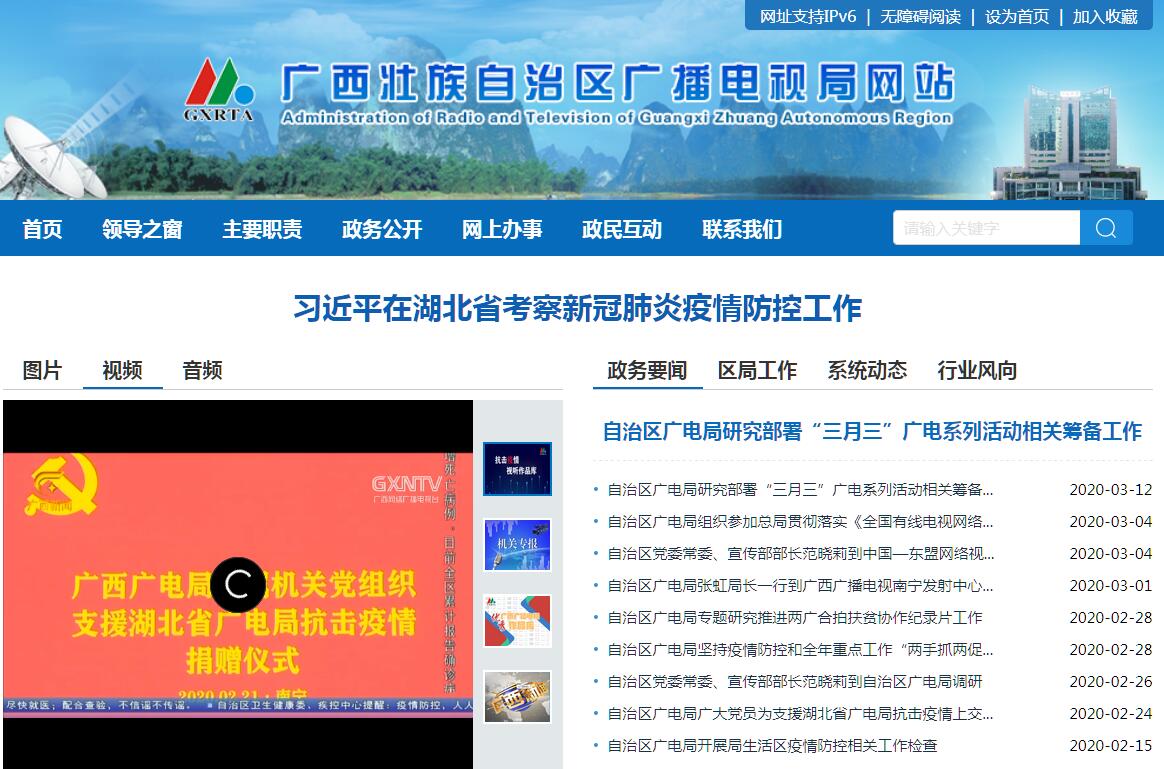 广西壮族自治区广播电视局主要职责:(一)贯彻执行党的宣传方针政策,拟订全区性广播电视、 网络视听节目服务管理的政策措施,加强广播电视阵地管理,把握正确的舆论导向和创作导向。(二)负责起草广播电视、网络视听节目服务管理的地方性法规、规章和规范性文件,制定相关技术规范并组织实施和监督检查,指导、推进全区广播电视领域的体制机制改革。(三)负责制定全区广播电视领域事业发展政策和规划,组织实施广播电视公共服务重大公益工程和公益活动,指导、监督全区广播电视重点基础设施建设,扶助老少边山贫地区广播电视建设和发展。(四)指导、协调、推动全区广播电视领域产业发展,制定发展规划、产业政策并组织实施。(五)负责对各类广播电视机构进行业务指导和行业监管,会同有关部门对网络视听节目服务机构进行管理。实施依法设定的行政许可,组织查处重大违法违规行为。(六)指导全区电视剧行业发展和电视剧创作生产。监督管理、审查全区广播电视节目、网络视听节目和公共视听载体播放的视听节目的内容和质量。指导、监管广播电视广告播放。(七)指导、协调广播电视全区性重大宣传活动,指导实施广播电视节目评价工作。(八)负责推进全区广播电视与新媒体新技术新业态融合发展,推进广电网与电信网、互联网三网融合。(九)组织制定全区广播电视和网络视听科技发展规划,组织实施广播电视和网络视听科技发展规划、政策和行业技术标准,并进行监督检查。负责对全区广播电视节目传输覆盖、监测和安全播出进行监管,指导、推进全区的国家应急广播体系建设。指导、协调全区广播电视系统安全和保卫工作。(十)开展广播电视对外交流与合作,协调推动全区广播电视领域“走出去”工作,负责广播电视节目的进口、收录和管理。(十一)指导全区广播电视、网络视听行业人才队伍建设。(十二)完成自治区党委、自治区人民政府交办的其他任务。
