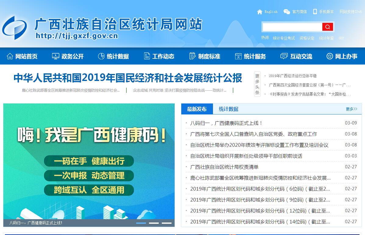 广西壮族自治区统计局主要职责:(一)承担组织协调和指导全区统计工作,确保统计数贯彻真实、准确、及时的责任;贯彻执行国家统计工作的政策和法律、法规,制定全区统计改革、统计科学发展规划及统计调查计划;组织协调和指导全区统计工作,监督检查统计法律、法规、规章的实施。(二)建立健全全区国民经济核算体系和统计指标体系;依据国家基本统计制度和统计标准,拟订全区地方统计调查方案;组织实施全区国民经济核算制度和投入产出调查,核算全区地区生产总值,汇编提供国民经济核算资料,监督管理各市国民经济核算工作。(三)组织实施国家部署的人口、经济、农业等重大国情国力普查及专项统计调查;研究提出重大区情区力普查和抽样调查计划并组织实施,汇总、整理和提供有关国情国力、区情区力方面的统计数据。(四)组织实施农林牧渔业、工业、建筑业、批发和零售业、住宿和餐饮业、固定资产投资、房地产业、租赁和商务服务业、居民服务和其他服务业、文化体育和娱乐业、运输服务业、仓储业、科技交流和推广服务业、社会福利业以及能源、投资、消费、居民收入、科技、人口、劳动力、社会发展基本情况、环境基本情况等统计调查,组织开展社情民意调查,收集、汇总、整理和提供有关调查的统计数据。(五)组织实施社会发展水平、县域经济发展、节能降耗、招商引资、全面小康及农村小康建设进程、农村贫困、妇女儿童等统计监测和综合评价,收集、整理和提供有关统计数据和资料。(六)综合整理和提供财政、金融、旅游、交通运输、邮政、文化教育、卫生、体育、社会保障、公用事业、对外贸易、对外经济等全区性基本统计数据。(七)对国民经济、科技进步、社会发展和环境资源等情况进行统计分析、统计预测和统计监督,向自治区党委、自治区人民政府及有关部门提供统计信息和咨询建议。(八)组织实施各地区、各部门的经济、社会、科技和资源环境统计调查,统一核定、管理、公布全区性基本统计资料,定期发布全区国民经济和社会发展情况的统计信息。(九)依法审批(备案)各部门、各地统计调查项目、统计调查方案;依法监督管理涉外调查活动;指导专业统计基础工作、统计基层业务基础建设;建立健全统计数据质量审核、监控、检查和评估制度,开展对重要统计数据的审核、监控和评估。(十)建立健全和管理全区统计信息自动化系统和统计数据库体系;组织制定各地区、各部门统计数据库网络的基本标准和运行规则,指导各市、县、乡镇统计信息化系统建设。(十一)协助各市管理统计局领导班子;会同有关部门组织管理全区统计从业资格认定、统计专业资格考试和职务评聘工作。监督管理国家统计局和自治区财政划拨的统计专项经费。(十二)承办自治区人民政府交办的其他事项。