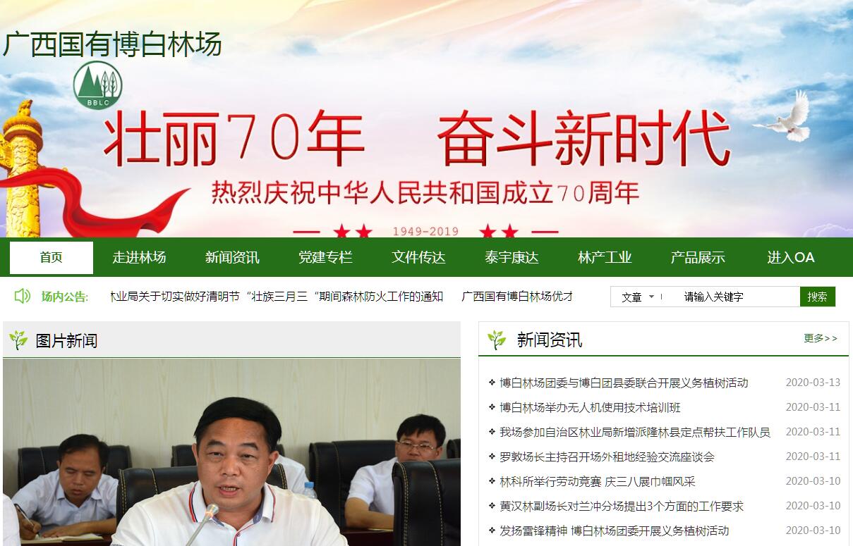 | 网站简介: 广西国有博白林场创建于1962年,是自治区林业局直属国有大型林场,正处级事业单位,广西现代林业产业龙头企业,实行事业单位企业化管理,主营速丰林、人造板、苗木等产业,是国家木材战略储备重要基地和速生丰产林培育基地。场部位于广西玉林市博白县,内设11个职能科室、下辖9个营林分场、以及年产25万m3中(高)密度纤维板的广西浩林人造板有限公司、年产8万m3胶合板的广西万林林产业责任有限公司和一个年产3000万株以上各类苗木的大型林木良种繁育基地,合作经营广西桉盛丰肥业有限公司和广西瀚林木业有限责任公司。林场现有员工2300人。林场经营总面积68.3万亩,活立木蓄积量181万m3,森林覆盖率82.8%。2017年,博白林场资产总额27亿元,综合实力排名广西林业前列。博白林场始终坚持“以林为本、多种经营、综合利用”的发展思路,深入推进一、二、三产业协调发展,经济实力不断增强。“十二五”期间,林场将按照规划蓝图和发展方向,进一步解放思想,赶超跨越,以更加昂扬的斗志和更加务实的作风,开拓创新,锐意进取,努力实现科学发展、跨越发展、和谐发展,构建现代化新林场。 |