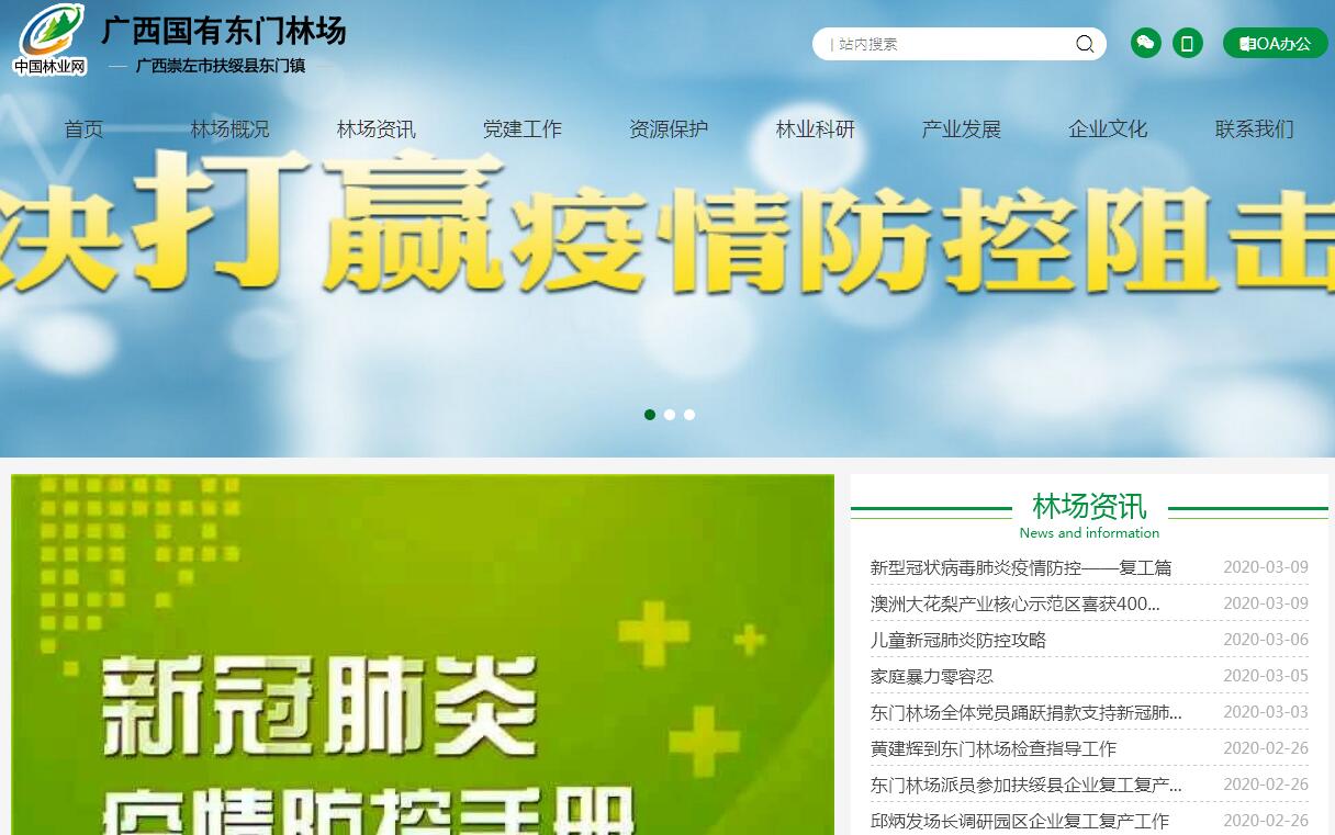 | 网站简介: 东门林场于1965年建场,位于广西西南部,旧场部位于崇左市扶绥县东门镇,新场部位于扶绥县城南新区金龙路10号,是广西壮族自治区林业局直属大型国有林场,是目前亚洲最大桉树基因库,拥有的桉树良种数量居全国之首,素有“中国桉树看广西,广西桉树出东门”之美誉。全场现有职工1100多人,内设10个机关科室、5个二层机构,下辖9个营林分场、2个科研单位、4个独资公司,参股合资专业集团公司7家(控股公司1家)。林场经营以速丰林、良种苗木、人造板、土地开发、林下经济等为主,经营总面积65.5万亩,森林蓄积总量260万立方米,年可采伐木材30万立方米,资产总额超14亿元。林场先后被评为全国特色种苗基地、全国林业先进集体、全国生态建设突出贡献奖—林木种苗先进单位、国家桉树良种基地、广西生态建设突出贡献奖先进集体、广西桉树良种培育中心、广西桉树标准化生产技术示范基地等称号。 |