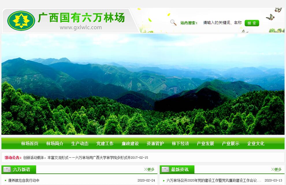 广西壮族自治区国有六万林场建于1951年,是广西壮族自治区林业局直属国有大型林场,位于中国南方药都、中国优秀旅游城市——广西壮族自治区玉林市,地处玉林市福绵区、博白县、兴业县和钦州市浦北县交界处,全场现有国有林地面积22.9万亩,森林覆盖率达93%。林场总部位于玉林市玉州区玉柴路6号,铁路、公路交通方便,区位条件优越。林场下设10个机关科室、 7个二层机构、1个林科所和9个营林分场,投资设立广西六万山林业有限公司等6个全资公司,南宁帝旺村木业有限公司等3个控股公司,建立有1个自治区级森林公园,1个广西现代特色八角产业核心示范区。全场现有经营面积44.5万亩,森林活立木蓄积量260万立方米,2014年通过国际FSC森林认证。林场主要经营森林资源培育、人造板、松香深加工、八角深加工、饮用天然泉水、森林旅游等产业。林场现有职工1371人,其中在职职工628人,离退休职工743人。2018年,林场资产总额23.93亿元,实现总产值12.18亿元。建场以来,曾先后荣获“全国林业模范单位”“全国绿化先进单位”“全国国营林场500强”“全国国营林场100佳单位”“广西森林经营示范林场”“广西现代林业产业龙头企业”“广西林业生态建设突出贡献奖先进集体”“全国十佳林场”等荣誉称号。六万林场建设的六万大山森林公园,先后被评定为自治区四星级乡村旅游景区、国家AAAA级旅游景区,依托六万大山森林公园建设的广西六万大山四季香海八角产业(核心)示范区被认定为广西现代特色农业(核心)示范区(四星级)。2018年,在森林公园内建成广西首家森林康养示范基地,六万大山森林公园被国家林业和草原局批准为国家森林小镇建设试点单位,荣获中国森林健康养生50佳称号。
