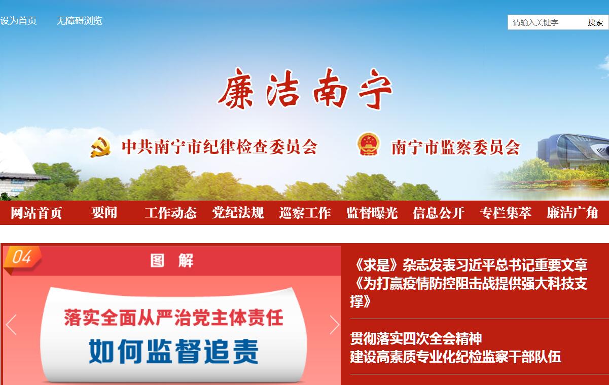 南宁纪检监察网由中共南宁市纪律检查委员会、南宁市监察委员会主办。