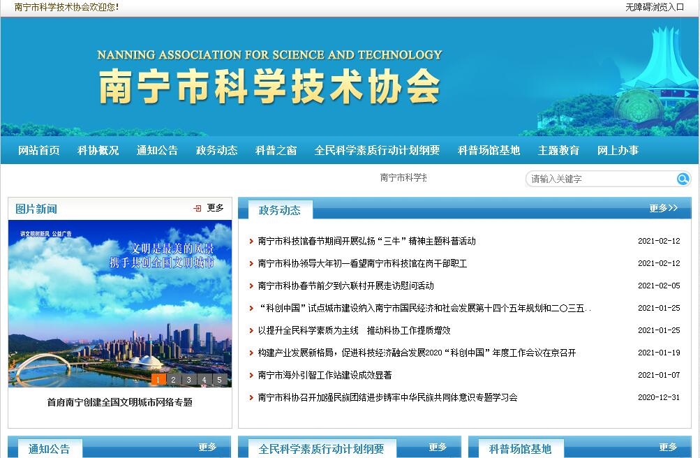 南宁市科协领导机构于2016年5月经科协第八次代表大会选举产生,设主席1人、副主席3人,兼职副主席8人(分别来自市教育局、市科技局、市财政局、市农委、市卫计委、市气象局、广西南南铝加工有限公司、广西田园生化股份有限公司),常务委员35人,委员97人。组织结构:市科协机关设办公室、学会部、科普部、青教部四个内设机构,共有干部职工21人,下辖市科技馆和市科技咨询服务中心两个事业单位,12个县、区均成立有科协机构,所属市级学会、协会、研究会43个,企事业科协68个,农村专业技术协会114个。其工作情况:1.深化海智基地平台建设,服务引才引智。召开第四届南宁市海外高层次人才与项目对接会,结合南宁市重点产业、重点领域的人才和项目发展需求,邀请30名海外高层次人才参会,共建有11家海智工作站。2.深化院士专家工作站建设,开展“讲理想、比贡献,服务企业创新发展。共建有院士工作站7家,引进院士8人。3.开展学术交流质量提升工程,服务科技工作者成长。以举办第七届学术年会、组织自然科学优秀论文评选和支持基层组织开展学术交流活动为抓手,切实提升学术交流的质量。4.争创中国科协创新驱动助力工程试点单位,服务南宁创新发展。南宁市成为2017年中国科协11个创新驱动助力工程试点单位之一。5.加强和完善全民科学素质工作。印发《南宁市全民科学素质行动计划纲要实施方案(2016-2020年)》;2015年南宁市公民科学素质达到6.7%。6.基层科普行动计划有序推进。获中央资金14个项目,161万元,市本级安排科普惠农资金59万元。7.青少年科技教育活动蓬勃开展。组织中小学生和科技辅导员参加第32届广西青少年科技创新大赛。南宁市选送参赛作品共106 项,有101个参赛项目获奖,获奖率95 %。8.主题科普宣传活动内容丰富。启动以“科普惠农益民,扶贫攻坚克难”为主题的百名专家进百村(社区)志愿服务活动。市科协面向全社会招募科普专家,不断充实专家库。同时将下拨20万的百名专家进百村补助经费到各县(区),支持各县区尤其是贫困县(区)更好开展科普活动。9.开展建家交友活动。目前,建有企事业科协70家,学(协)会42家,农技协116家。其主要荣誉:荣获全国《全民科学素质行动计划纲要》“十二五”实施工作先进集体、全国科普日活动优秀组织单位、全国科技创新大赛优秀组织单位、中国科协海智计划工作先进单位、广西科协系统先进集体、广西全民科学素质工作先进单位、广西十月科普大行动先进单位、广西青少年科技教育工作先进集体、全区青少年“爱科学月”活动先进集体、广西青少年科学节优秀组织单位等。