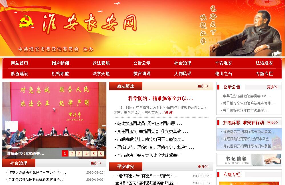淮安长安网由中共淮安市委政法委员会主办,其主要职能:1、根据党的路线、方针、政策和市委、市政府、省委政法委、省综治办的部署,统一政法、综合治理各部门的思想和行动。2、组织协调、指导维护全市社会稳定的工作。3、对一定时期内的全市政法、社会治理、综治与平安、法治工作、队伍建设作出全局性部署,并督促贯彻落实。4、承担依法治市领导小组办公室的日常工作;根据市委、市政府和市依法治市领导小组的工作要求,负责拟定依法治市工作规划、年度计划和相关制度。5、检查政法部门执行法律法规和党的方针政策的情况,结合实际,研究制订严格执法、落实党的方针政策的具体措施。6、大力支持和严格监督政法各部门依法行使职权,指导和协调政法各部门在依法相互制约的同时密切配合,督促、推动大案要案的查处工作。研究协调有争议的重大、疑难案件。7、组织、协调社会治安综合治理工作,推动各项措施的落实。8、牵头组织开展矛盾纠纷排查和调处工作。9、组织推动政法工作的调研和宣传工作,探索政法、综合治理工作改革,总结新经验,解决新问题。10、研究加强政法队伍建设和领导班子建设的措施,协助市委及其组织部门考察、管理市政法部门的领导干部;协助纪检、监察部门查处涉及政法领导干部的大案要案。11、承担法学会机关日常工作,负责法学会理事会、常务理事会、会长办公会等会议的组织筹备;组织、指导、协调所属研究会和会员开展法学研究活动。12、指导下级政法委各项业务工作工作。13、办理市委、市政府和省委政法委交办的其他事项。