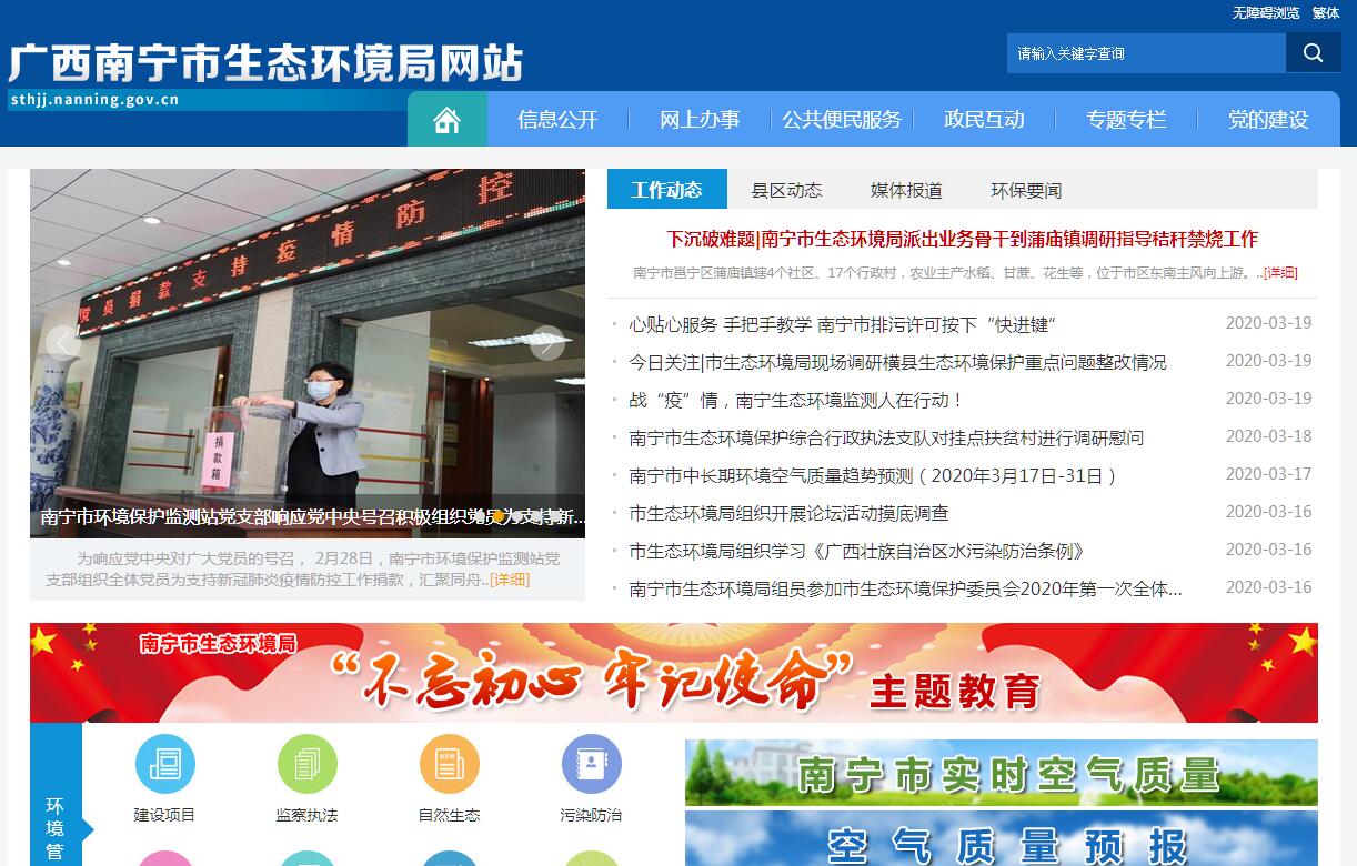 南宁市生态环境局贯彻落实党中央、自治区党委和南宁市委关于生态环境保护工作的方针政策和决策部署,在履行职责过程中坚持和加强党对生态环境保护工作的集中统一领导。其主要职责是:(一)负责建立健全全市生态环境基本制度。贯彻执行国家生态环境保护法律法规和方针、政策,起草相关生态环境地方性法规、规章草案和规范性文件。会同有关部门拟订生态环境政策、规划并组织实施。会同有关部门编制并监督实施重点区域、流域和饮用水水源地生态环境规划和水功能区划。(二)负责全市生态环境问题的统筹协调和监督管理。牵头协调环境污染事故和生态破坏事件的调查处理,指导协调处理突发生态环境事件的应急、预警工作,牵头指导实施生态环境损害赔偿制度,协调解决跨县(区)、开发区环境污染纠纷,统筹协调全市重点区域、流域生态环境保护工作。负责联络对接中央、自治区生态环境保护督察工作。(三)负责监督管理全市减排目标的落实。组织实施各类污染物排放总量控制和排污许可证制度,监督检查县(区)、开发区污染物减排任务完成情况,实施生态环境保护目标责任制。(四)负责提出市生态环境系统固定资产投资规模和方向、财政性资金安排的意见,按市人民政府规定权限,审批、核准南宁市规划内和年度计划规模内固定资产投资项目,配合有关部门做好组织实施和监督工作。参与指导推动循环经济和生态环保产业发展。(五)负责全市环境污染防治的监督管理。制定大气、水、土壤、噪声、光、恶臭、固体废物、化学品、机动车等污染防治管理制度并监督实施。会同有关部门监督管理饮用水水源地生态环境保护工作,组织指导城乡生态环境综合整治工作,监督指导农业面源污染治理工作。监督指导区域大气环境保护工作,组织实施区域大气污染联防联控协作机制。(六)指导协调和监督全市生态保护修复工作。组织编制生态保护规划,组织开展生态状况评估,监督对生态环境有影响的自然资源开发利用活动、重要生态环境建设和生态破坏恢复工作。组织制定各类自然保护地生态环境监管制度并监督执法。监督野生动植物保护、湿地生态环境保护、荒漠化防治等工作。指导协调和监督农村生态环境保护,组织指导生态示范创建,监督生物技术环境安全,牵头生物物种(含遗传资源)工作,组织协调生物多样性保护工作,参与生态保护补偿工作。(七)负责全市核与辐射安全的监督管理。拟订有关政策、规划,监督管理放射源安全,监督管理核技术应用、电磁辐射、伴有放射性矿产资源开发利用中的污染防治。参与核事故应急处理,负责辐射环境事故应急处理工作,参与核与辐射恐怖事件的防范和处置。(八)负责全市生态环境准入的监督管理。按规定审查重大开发建设区域、规划环境影响评价文件。拟订并组织实施生态环境准入清单。(九)负责市生态环境质量监测之外的其他生态环境监测工作。制定生态环境监测制度并组织实施。组织实施污染源监督性监测、温室气体减排监测、执法监测、突发环境事件应急监测。组织建设和管理全市生态环境信息网。统一发布全市生态环境综合性报告和重大生态环境信息。(十)负责应对气候变化工作。拟订全市应对气候变化及温室气体减排战略、规划和政策,组织实施有关减缓和适应气候变化的具体措施和行动,指导全市应对气候变化工作。(十一)负责全市生态环境监督执法工作。组织开展全市生态环境保护执法检查活动。查处生态环境违法问题。指导全市生态环境保护综合执法队伍建设和业务工作。(十二)组织指导和协调全市生态环境宣传教育工作。制定全市生态环境保护宣传教育计划并组织实施,开展生态文明建设和环境友好型社会建设的有关宣传教育工作,推动社会组织和公众参与生态环境保护。(十三)开展生态环境对外合作与交流。研究提出区域生态环境合作中有关问题的建议,组织协调有关生态环境国际条约在我市的履约工作,参与处理有关涉外生态环境事务。(十四)依照《中华人民共和国安全生产法》和其他有关法律、法规的规定,在职责范围内对有关行业、领域的安全生产工作实施监督管理。(十五)完成自治区生态环境厅、南宁市委、市人民政府交办的其他任务。
