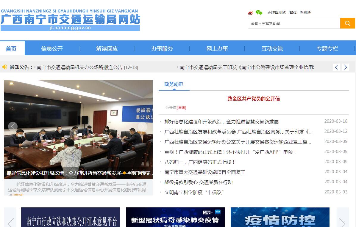 南宁市交通运输局主要职责:一、承担涉及全市综合运输体系的规划协调工作,会同有关部门组织编制综合运输体系规划;指导交通运输枢纽规划和管理。二、贯彻执行国家、自治区有关交通运输的法律、法规、规章、政策、行业规划和标准;组织拟订并监督实施全市公路、水路及城市公共交通等行业规划、政策和标准;组织起草交通运输工作的地方性法规和规章草案;参与拟订物流业发展战略和规划,拟订有关政策和标准并监督实施;指导公路、水路、城市公共交通运输行业有关体制改革工作。三、承担全市道路、水路运输、城市公共交通行业(含出租汽车)监管责任。指导并监督实施道路、水路运输、城市公共交通行业有关政策、准入制度、技术标准和运营规范;指导城乡客运及有关设施规划和管理工作。四、负责提出全市公路、水路、城市公共交通固定资产投资规模和方向;提出国家、自治区和南宁市政府财政性资金安排意见、建议,并监督实施;按规定权限审批、核准国家、自治区、南宁市规划内和年度计划规模内固定资产投资项目;按规定负责交通专项资金的拨付和监管;依法负责市辖收费公路的行业管理工作,提出有关财政、土地、价格等政策建议。五、承担全市公路、水路建设市场监管责任。拟订全市公路、水路工程建设相关政策、制度和技术标准并监督实施;组织协调公路、水路交通基础设施建设的工程质量、安全生产监督管理工作;指导公路、水路基础设施管理和维护;依法负责港口规划和港口岸线使用管理工作;监督管理公路、水路建设项目招投标活动。六、指导全市公路、水路及公共交通行业安全生产和应急管理工作;按规定组织协调全市重点物资运输和紧急客货运输;承担国防动员有关工作。七、指导全市交通运输信息化建设,监测分析运行情况,开展相关统计工作,发布有关信息;指导公路、水路及公共交通行业环境保护、科技开发、工程造价和节能减排工作;指导行业教育、培训和精神文明工作;指导交通运输所属单位内部治安保卫、综合治理及行业维护稳定工作。八、依法管理全市公路、道路运输、水路运输、城市公共交通行政执法(含治理公路超限)工作;指导港口设施保安工作。九、对机关、所属单位国有资产进行监督管理。组织实施交通运输系统内部审计工作。十、指导、协调公路、水路运输和城市公共交通行业利用外资工作,开展对外合作与交流。十一、承办市人民政府交办的其他事项。