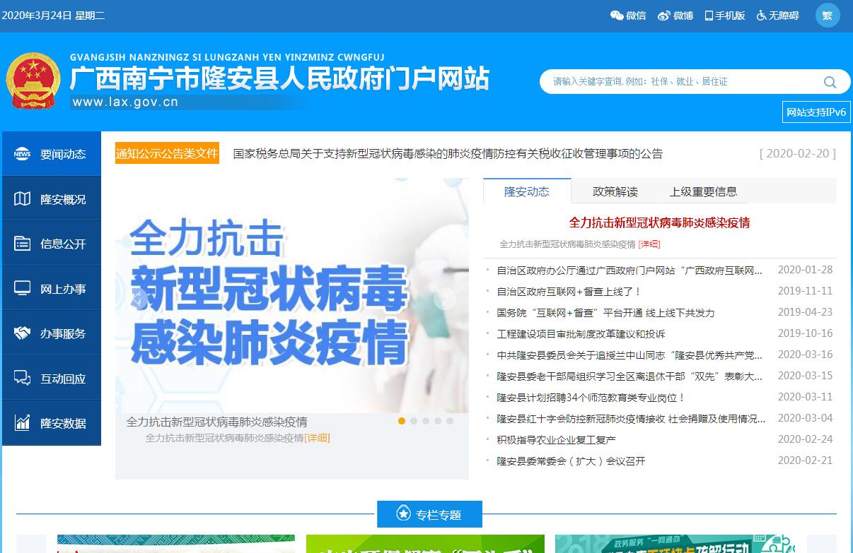 隆安县 ,隶属广西壮族自治区南宁市,位于广西壮族自治区的西南部、右江下游两岸,地处东经107°21′~108°6′,北纬22°51′~23°21′,北与百色市平果市相连,西及西南连崇左市天等县、大新县、江州区、扶绥县,东南同本市西乡塘区及接壤,东北邻本市武鸣县,县境东西最大横距77千米,南北最大纵距56千米,总面积2277平方千米,隆安县属南亚热带湿润季风气候,炎热多雨,冬短夏长。截至2018年,隆安县辖6个镇、4个乡,县人民政府驻城厢镇。隆安县是大西南铁路、公路、水路的重要交通枢纽。截至2018年,隆安县总人口41.94万,有壮、汉、苗、瑶等13个民族。秦朝(前214年-前206年)属象郡地,唐武德五年(622年),从宣化县分设朗宁县时,为朗宁地,属邕州,明嘉靖十二年(1533年)四月,设置隆安县,属南宁府管辖,1958年12月,隆安县与武鸣县合并称武隆县。1959年5月10日,恢复隆安县建制。2017年,隆安县地区生产总值73.18亿元,同比增长6.6%。三次产业中,第一产业增加值27.95亿元,同比增长4.1%;第二产业增加值19.77亿元,同比增长6.9%,其中工业增加值10.62亿元,同比增长9.0%;第三产业增加值25.46亿元,同比增长9.2%。2019年1月25日,入选2018年度全国“平安农机”示范县。2019年3月,入选第一批革命文物保护利用片区分县名单。