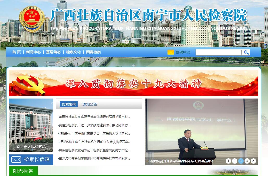 南宁市人民检察院位于南宁市素有“森林大道”之称的民族大道72号,下辖12个基层检察院和1个派出检察院,全市共有编制772人,在职干警 659人,其中市院机关编制 146人,在职干警130人。市院内设机构有:办公室、政治部、机关党委、侦查监督处、公诉一、二处、反贪污贿赂局、反渎职侵权局、监所检察处、民事行政检察处、控告申诉检察处、职务犯罪预防处、检察技术处、研究室、监察处、行政计财装备处等16个部门。南宁市人民检察院以科学发展观为统领,紧紧围绕改革发展稳定大局,深入实践“强化法律监督,维护公平正义”的工作主题,认真落实“加大工作力度,提高执法水平和办案质量”的总体要求,充分履行法律监督职责,全面加强自身建设,各项检察工作持续健康发展。2004年以来,全市检察机关共审查批准逮捕各类犯罪嫌疑人14758人,审查起诉14186人;立案侦查国家机关工作人员职务犯罪案件426件542人,为国家挽回经济损失6755万余元;办理控告申诉举报案件9293件;办理民事行政申诉案件1589件。三年来,先后有46个单位84个集体,283人次受到最高人民检察院、自治区人民检察院及南宁市委、市政府表彰。其中:市院连续两年荣获全国检察机关集中处理涉检信访问题专项活动先进单位,市院行装处被高检院评为“全国检察系统服装管理先进集体”,市院办公室被高检院评为全国检察机关信息直报点先进集体,连续五年被评为全区检察机关信息工作先进单位,青秀院先后被高检院授予“全国先进检察院”、“全国模范检察院”称号,市院和青秀院、武鸣院、宾阳院被高检院评为“全国检察机关文明接待室”。