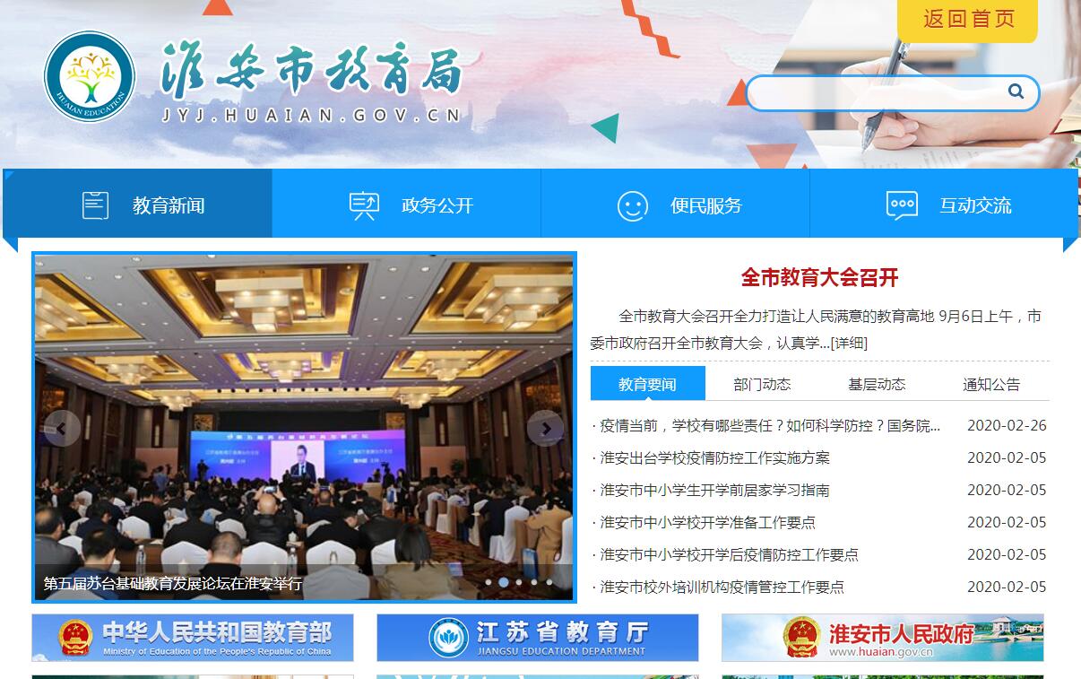 淮安市教育局基本形成了较为优质的现代国民教育体系和较为完善的终身教育体系。淮安全市有各级各类学校、成规模幼儿园852所,在校生90.14万人,专任教师4.91万人,其中成规模幼儿园365所,在园幼儿17.35万人,幼儿教师0.42万人;小学279所,小学生31.19万人,小学教师1.87万人;初中144所,初中生14.87万人,初中教师1.33万人;普通高中29所,高中生9.35万人,普通高中教师0.65万人;中等职业学校21所,中职生9.08万人,中职教师0.28万人;高校7所,大学生8.14万人,高校教师0.34万人;特殊教育学校7所,特教生0.16万人,特教教师0.02万人。社区教育资源不断丰富,淮安全市建成省级社区教育实验区8个、省级社区教育培训学院6个、省级社区教育中心20个、省居民学校50个,市级社区教育中心60个、市级居民学校110个。其主要职责:(一)贯彻党和国家的教育方针、政策,落实国家和省有关教育的法律法规;拟订教育改革和发展的政策及规划并组织实施。(二)负责各级各类教育的统筹规划和协调管理;指导各级各类学校的教育教学改革;负责全市教育基本信息、的统计、分析和发布。(三)负责本部门教育经费的统筹管理,提出市财政预算内教育经费预算方案和建议;参与拟订教育经费筹措、教育拨款、教育收费和教育基建投资等方面的政策;负责统计全市教育经费投入情况。(四)负责推进义务教育均衡发展和促进教育公平;负责义务教育的宏观指导与协调,指导普通高中教育、幼儿教育和特殊教育工作;指导以就业为导向的职业教育的发展与改革。统筹指导社会教育和继续教育;组织审定基础教育地方课程教材,全面实施素质教育;指导中等职业教育教材建设和职业指导工作;审核报批普通高中、中等职业学校的设置、调整、更名和撤销;协调省属高校与地方的联系。(五)统筹规划、协调指导并组织实施全市教育体制、办学体制、人事制度、管理体制等方面的综合改革。(六)指导学校德育工作、思想政治工作、体育卫生与艺术教育工作以及国防教育工作。(七)指导全市学校党的建设工作,会同市有关部门指导学校统战工作,指导学校的工会、共青团、妇联等群众组织开展工作。(八)指导、协调教育系统维护稳定以及学校安全保卫工作, 指导学校后勤管理与改革工作。(九)主管全市教师工作,组织、指导实施教师资格制度, 组织、指导教育系统专业技术职务评审聘任工作;指导、协调教育系统教师队伍建设和干部队伍建设。(十)负责全市中等教育的招生考试和学籍学历管理工作, 拟订中等学校招生计划和招生政策;参与拟订中等职业学校毕业生就业创业政策,指导中等职业学校开展学生就业创业指导和服务工作。(十一)规划、指导全市教育系统的教育教学科一学研究,指导教育信息化等工作。(十二)组织、指导教育系统国际交流与合作以及与港澳台的教育交流合作工作。(十三)负责全市语言文字工作。指导语言文字规范化建设, 监督检查语言文字的应用情况,负责普通话推广和普通话水平测试管理工作。(十四)负责全市各类高等教育自学考试及其他有关教育考试的组织管理工作。(十五)承办市委、市政府交办的其他事项。