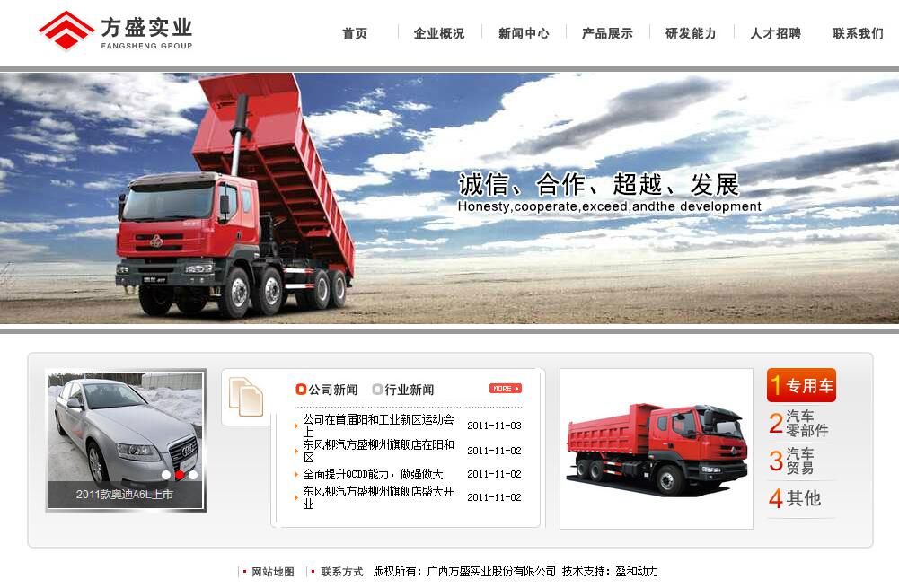 | 网站简介: 广西方盛实业股份有限公司成立于2000年7月(以下简称“方盛公司”),是以生产汽车零部件、专用车为主的民营企业集团,总资产超过40亿元,员工4000多人,是广西区较大的汽车零部件制造企业之一。现拥有十家子(分)公司和合资企业,具有较强的机械加工、模具制造、汽车饰件制造、冲压、焊接、锻造能力。公司与台湾多家企业合资,并拥有方盛工业园、方盛汽车电子园两大产业园区。方盛公司确立了“合作、超越、诚信、发展”的经营理念,树立“团结、奉献、学习、创新”的员工精神,明确了“不断进步、成为优秀”的方针目标,倡导先做人后做事、奋发有为的价值取向,为公司持续发展奠定了企业文化的基石。方盛公司成立十年来,在公司规划的引导和企业文化的激励下,实现了快速健康发展,由过去只为东风柳汽单一配套到同时面向上汽通用五菱、东风公司、一汽解放、北汽福田、宇通客车、金龙客车等知名企业提供配套。方盛车桥等汽车零部件、“福狮牌”专用汽车在市场上已具有一定的市场影响力和品牌知名度。 |