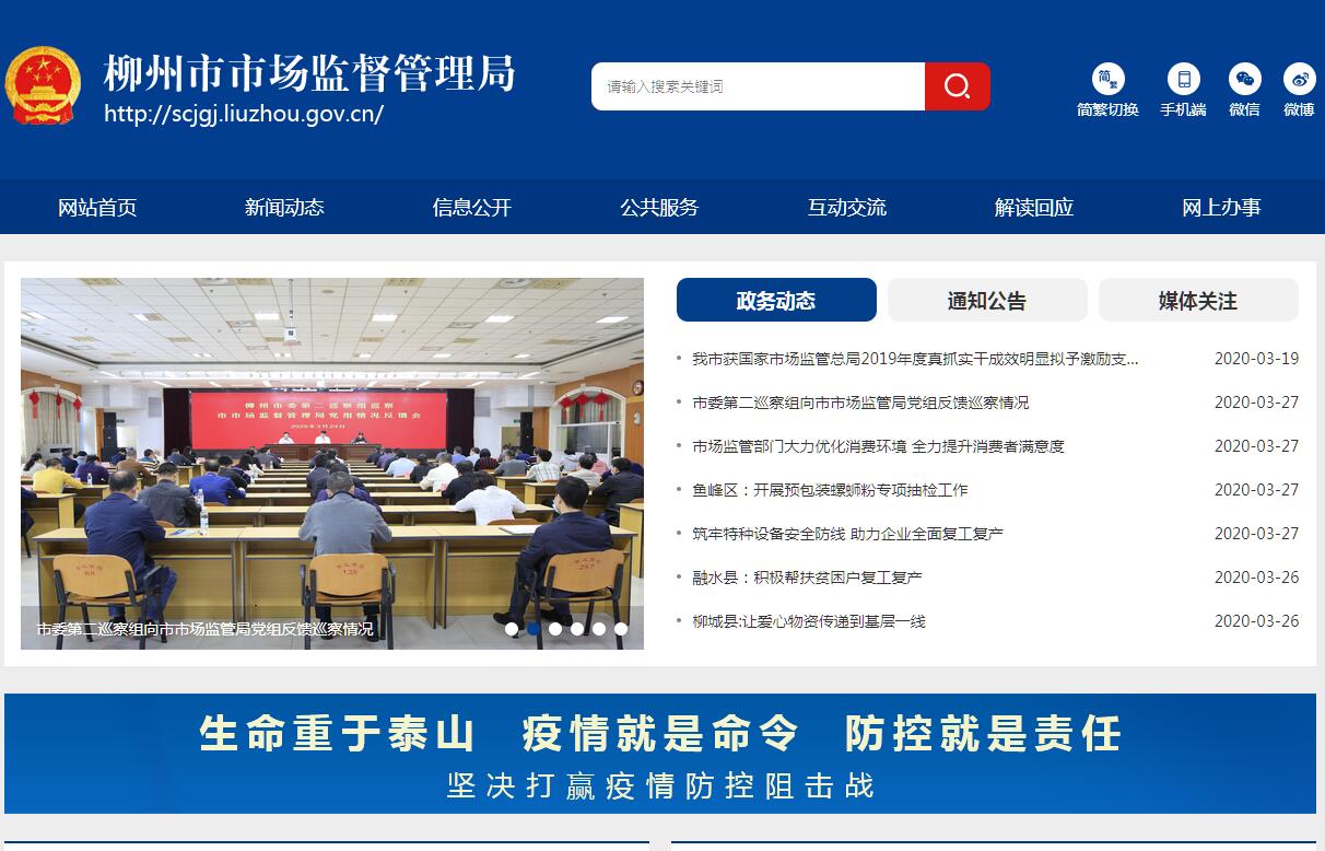 柳州市市场监督管理局主要职责是:(一)负责全市市场综合监督管理。起草柳州市市场监督管理有关地方性法规、政府规章草案,制定有关政策、标准,组织实施质量强市战略、食品安全战略、标准化战略、知识产权战略、品牌战略。拟订并组织实施有关规划,规范和维护市场秩序,营造诚实守信、公平竞争的市场环境。(二)指导市场主体统一登记注册。指导各类企业、农民专业合作社和从事经营活动的单位、个体工商户等市场主体的登记注册。依法公示和共享市场主体有关信息,加强信用监管,推动市场主体信用体系建设。(三)负责组织和指导全市市场监督管理综合行政执法工作。指导市场监督管理综合行政执法队伍建设,推动实行统一的市场监管。组织查处重大违法案件。规范市场监督管理和知识产权行政执法行为。(四)负责反垄断统一执法。统筹推进竞争政策实施,指导实施公平竞争审查制度。协助上级开展垄断协议、滥用市场支配地位和滥用行政权力排除、限制竞争等反垄断执法工作。依法对经营者集中行为进行监督。(五)负责监督管理全市市场秩序。依法监督管理市场交易、网络商品交易及有关服务的行为。组织指导查处价格收费违法违规、不正当竞争、违法直销、传销、违法广告、制售假冒伪劣、侵犯商标专利知识产权等行为。指导广告业发展,监督管理广告活动。组织指导消费维权工作,指导消费者咨询、申诉、举报受理、处理和网络体系建设。指导柳州消费者权益保护委员会开展消费维权工作。(六)负责宏观质量管理工作。贯彻落实国家、自治区质量发展战略。统筹质量基础设施建设与应用。会同有关部门组织实施重大工程设备质量监理制度,组织全市重大产品质量事故调查,推行缺陷产品召回制度,监督管理产品防伪工作。(七)负责产品质量安全监督管理。组织实施产品质量监督抽查、风险监测工作。组织实施质量分级制度、质量安全追溯制度。协助开展纤维质量监督管理工作。指导工业产品生产许可管理。(八)负责特种设备安全监督管理。综合管理特种设备安全监察、监督工作。监督检查高耗能特种设备节能标准和锅炉环境保护标准的执行情况。依法承担特种设备安全事故调查工作。(九)负责食品安全监督管理综合协调。统筹指导食品安全工作。负责食品安全应急体系建设,组织指导较大食品安全事件应急处置和调查处理工作。完善并落实食品安全重要信息直报制度。承担市食品安全委员会日常工作。(十)负责食品安全监督管理。建立覆盖食品生产、流通、消费全过程的监督检查制度和隐患排查治理机制并组织实施,防范区域性、系统性风险。推动建立食品生产经营者落实主体责任的机制,健全食品安全追溯体系。组织开展食品安全监督抽检、风险监测、核查处置和风险预警、风险交流工作。组织实施特殊食品、食盐监督管理。(十一)负责统一管理计量工作。贯彻执行国家计量制度,推行法定计量单位,依职责管理计量器具及量值传递溯源和比对工作。规范、监督商品量和市场计量行为。(十二)负责统一管理标准化工作。依法协调指导和监督地方标准、团体标准制修订工作。依法组织实施国家、行业及地方标准,实施标准化发展战略,规范标准化活动。(十三)负责统一管理认证认可与检验检测工作。组织实施认证认可与检验检测监督管理的制度措施。推进检验检测机构改革。规划指导全市认证认可与检验检测行业发展。依法监督管理认证认可与检验检测工作。(十四)负责市场监督管理科技和信息化建设、新闻宣传、对外交流与合作。参与开展相关工作对外谈判。按规定承担技术性贸易措施有关工作。(十五)组织指导个体私营经济发展与监督管理。扶持全市个体私营经济发展。指导查处无照生产经营和相关无证生产经营行为。配合党委组织部门开展小微企业、个体工商户、专业市场的党建工作。(十六)负责促进知识产权运用和知识产权保护。归口管理全市知识产权工作,拟订实施知识产权激励奖励制度、转化运用和交易运营政策措施。指导知识产权无形资产评估工作。指导促进知识产权服务业发展。统筹指导知识产权公共服务体系建设,推动知识产权信息传播利用。组织实施严格保护商标、专利、地理标志产品等知识产权制度措施。研究提出知识产权保护体系建设方案并组织实施,推动建设知识产权保护体系。负责组织指导商标、专利执法工作,指导知识产权争议处理、维权援助和纠纷调处。组织指导知识产权风险预测预警和涉外保护工作。组织实施鼓励新领域、新业态、新模式创新的知识产权保护、管理和服务政策。(十七)负责药品(含中药、民族药,下同)、医疗器械和化妆品安全监督管理。监督实施全市药品、医疗器械、化妆品标准和分类管理制度。监督实施药品、医疗器械地方性标准。配合有关部门实施国家基本药物制度。(十八)监督实施药品、医疗器械经营质量管理规范。监督实施化妆品经营、使用卫生标准和技术规范。推动落实药品、医疗器械和化妆品安全企业主体责任。(十九)负责全市药品、医疗器械和化妆品上市后风险管理。组织开展药品不良反应、医疗器械不良事件和化妆品不良反应的监测工作。依法承担药品、医疗器械、化妆品安全风险监测和应急管理工作。(二