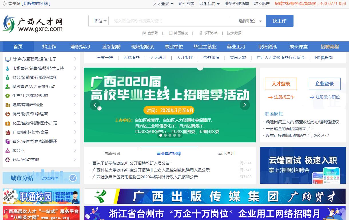 | 网站简介: 广西人才网隶属于广西智汇佳人力资源有限公司,并由广西智汇佳人力资源有限公司负责运营维护(广西智汇佳人力资源有限公司系广西南宁人才智力交流开发中心全资子公司)。广西人才网是由广西壮族自治区人力资源和社会保障厅(原广西壮族自治区人事厅)直属事业单位广西壮族自治区人才服务中心、中国广西人才市场创办的大型人力资源专业网站,为企业及个人提供网络招聘、网络广告、网上人才交流会、网上人才信息查询、网上求职等多项服务,网站信息量大,服务范围覆盖全区,同时辐射华南、西南地区,是目前广西拥有海量的人才数据库、丰富的招聘职位、高访问量、广覆盖面和完善的服务体系的专业人力资源网站。广西人才网自 2003 年11月正式开通以来,得到了广大求职者和用人单位的大力支持,业务发展突飞猛进,目前,广西人才网每天页面访问量达100万次,每天在线招聘的企业超过10000家,每天在线招聘的职位将近8万个,每天在线的求职人才超过10万人,是广西具有广泛影响力的人力资源网站,为广西人才服务业发展和广西经济发展做出了重大贡献。 |