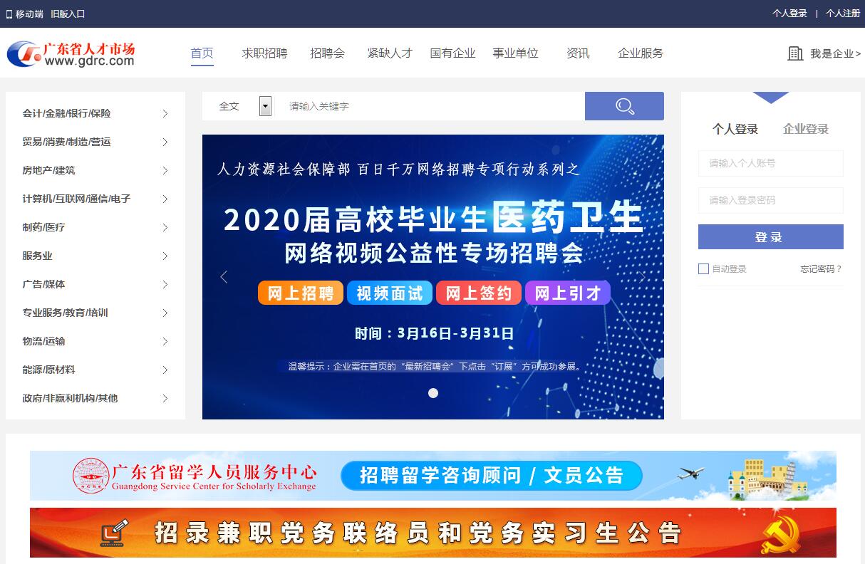 | 网站简介: 广东省人才市场(www.gdrc.com)——在广东找工作,上广东省人才市场!广东省人才市场唯一官方人才网!广东省人才市场官网是广东省人才市场建设和管理的大型专业网站,网上发布国家和省人事人才政策法规,提供网上人才招聘、人才求职、人事新闻、人才市场动态、毕业生就业等各类信息。目前广东省人才市场拥有超过200万个人用户,每日访问量逾150万人次,每日注册企业3万个,发布职位8万个。广东省人才市场还是泛珠三角区域人才服务合作人才网联盟的核心,现在人才网联盟已覆盖19个省市,共43个政府所属人才网站,实现跨网搜索职位和简历、跨网投递个人简历、视频简历、企业影音宣传、网上增值服务、远程视频面试等方便用户的功能。“一网注册,各网通行”,广东省人才市场秉承“为经济建设服务、为各类人才服务、为会员服务”的宗旨,为企业提供网上网下全方位的人力资源服务,是招聘和求职的最佳平台之一。 |