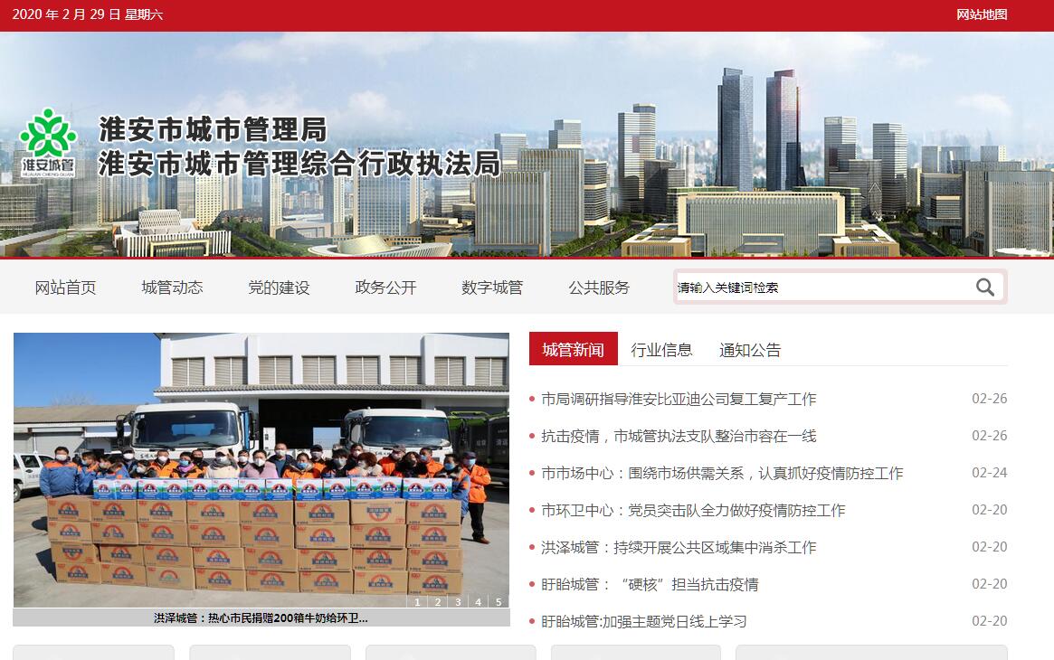 江苏省淮安市城市管理局(淮安市城市管理行政执法局)是市政府主管全市城市管理和城管行政执法工作的职能部门。内设7个职能处室,下设5个直属单位。市城市管理委员会办公室、市市区防治违法建设领导小组办公室设在市城管局。淮安市城市管理(行政执法)局主要职责是:(一)贯彻国家、省有关城市管理的方针、政策和法律、法规、规章;拟订全市城市管理发展规划、实施计划和规范性文件,并组织实施。(二)负责市区城市管理的组织领导、规划协调、检查监督、目标管理和考核评比等工作。(三)负责城市管理法制宣传和城市管理知识的普及教育工作。(四)负责城市市容和环境卫生管理。负责在市区主次干道两侧和广场周边等公共地段修建、搭建非永久性建筑物、构筑物或其他设施建设审批前的核准工作;按有关规定负责对市区户外广告、霓虹灯等的设置管理;负责对市区停车场点、洗车点的设置和管理;负责城市环境卫生设施的规划、建设和管理;会同有关部门负责对市区占用广场、绿化带、小游园、临时马路市场和占道摊点的管理;负责城市生活垃圾、建筑垃圾和其它废弃物的处置;负责办理市政府规定应由市城管局参与审核或备案的其它事项。(五)负责市区城市管理行政执法工作,相对集中行使以下行政处罚权: 1、市容环境卫生管理方面法律、法规、规章规定的行政处罚权;2、城市规划管理方面法律、法规、规章规定的未经规划部门审批的建筑物、构筑物或其它设施的行政处罚权;3、城市绿化管理方面法律、法规、规章规定的除公园、风景名胜区、住宅小区、单位绿化及古树名木保护以外的行政处罚权;4、市政管理方面法律、法规、规章规定的关于城市道路、照明设施、市政设施管理的行政处罚权;5、工商行政管理方面法律、法规、规章规定的对集贸市场以外的无照商贩的行政处罚权;6、公安交通管理方面法律、法规、规章规定的对侵占道路行为的行政处罚权;7、环境保护方面法律、法规、规章规定的关于在公共场所焚烧杂物以及向城区河道、水面倾倒工业废渣、城市垃圾和其他废弃物的行政处罚权;暂未集中的相关方面的行政处罚权,待条件成熟后再集中由城市管理行政执法机关行使。(六)指导各县(区)城市管理和城市管理行政执法的业务工作。(七)承办市政府交办的其他工作。