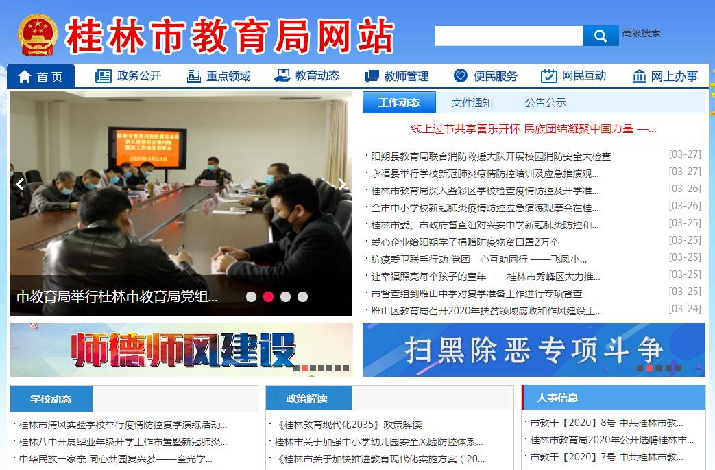 桂林市教育局,为市人民政府工作部门。其主要职责是: (一)贯彻执行国家的教育方针和政策,拟订全市教育改革与发展的政策和规划,并监督实施。(二)综合管理全市基础教育、职业教育、成人教育、学前教育、特殊教育、继续教育、市属高等教育等工作;运用法律法规和行政手段对各级各类学校进行宏观调控管理和督导评估。负责全市教育基本信息的统计、分析和发布。(三)综合研究、统筹规划、协调指导全市教育系统教育教学体制机制的改革与创新;全面实施素质教育,推进全市义务教育均衡发展和促进教育公平;指导中小学布局调整,理顺教育内部和外部的关系。(四)会同有关部门对教育经费、教育建设投资、年度经费预算等进行研究、调拨和审计;负责教育经费汇总统计工作;负责全市教育系统大中型项目基建的立项及投资申报工作;指导全市教育系统的财务管理、监督工作。(五)拟订市本级地方教育附加和教育费附加的使用计划。指导直属单位节能减排、资产管理工作。(六)指导各级各类学校的党风廉政建设、思想政治工作、德育工作、心理健康教育、体育卫生、艺术教育、国防教育、环境教育等工作。(七)统筹和指导全市教师管理工作,依法组织实施教师资格制度,统筹和指导教师招聘、教师培训工作;统筹和指导校长队伍建设;负责直属学校教师队伍、校长队伍建设与管理。(八)组织指导全市各级各类学历教育及其考试工作;规划指导高中阶段学校招生考试、普通高中会考、成人自学考试、扫除青壮年文盲工作。(九)指导全市教育科学研究和教学改革,进一步提高教育教学质量。指导全市学校教育信息化、电化教育研究、教育装备配备与管理工作;指导中小学勤工俭学、社会实践工作;指导、监督和承担学生资助管理工作。(十)指导全市教育督导工作。(十一)拟订全市语言文导工作的政策和规划,指导汉语言文字规范化工作,监督检查语言文字的应用情况,指导推广普通话工作。(十二)指导中小学校安全稳定工作和学校安全监督管理工作。(十三).承办市人民政府交办的其他事项。