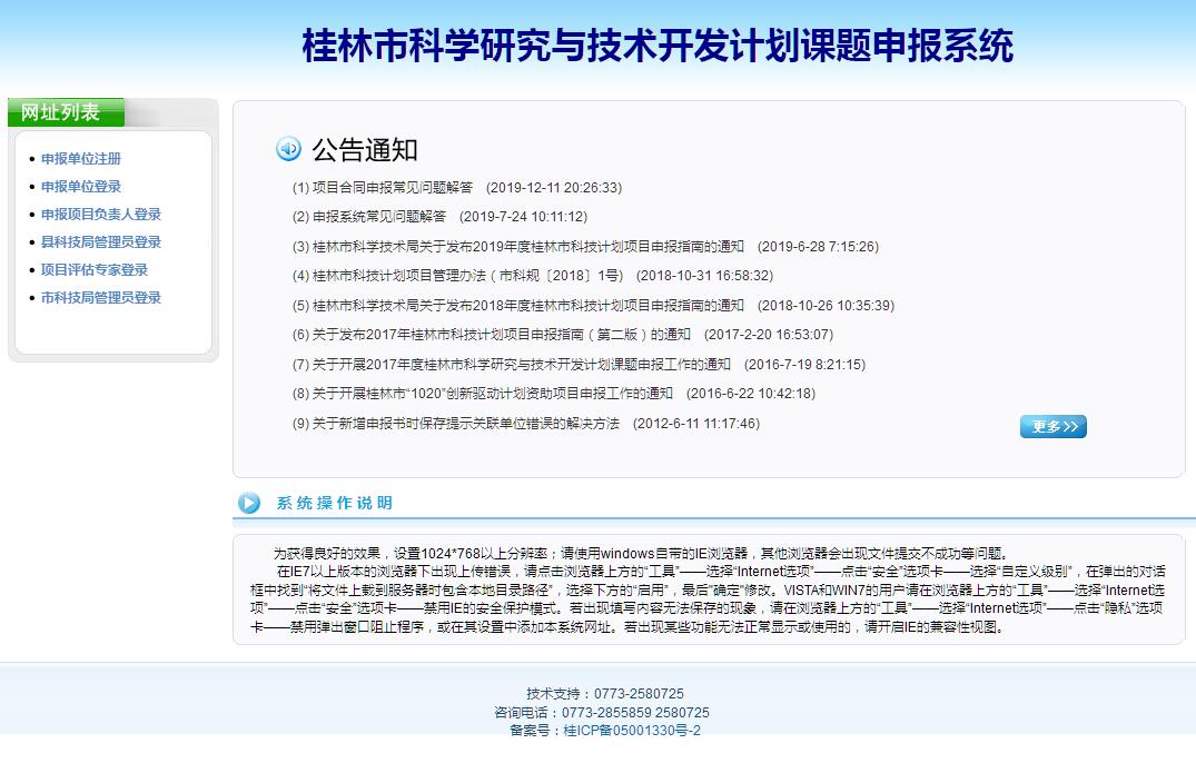 | 网站名称: | 桂林市科学研究与技术开发计划课题申报系统 | ||