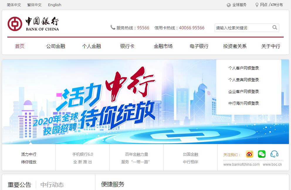1912年2月,经孙中山先生批准,中国银行正式成立。从1912年至1949年,中国银行先后行使中央银行、国际汇兑银行和国际贸易专业银行职能,坚持以服务社会民众、振兴民族金融为己任,历经磨难,艰苦奋斗,在民族金融业中长期处于领先地位,并在国际金融界占有一席之地。1949年以后,中国银行长期作为国家外汇外贸专业银行,统一经营管理国家外汇,开展国际贸易结算、侨汇和其他非贸易外汇业务,大力支持外贸发展和经济建设。改革开放以来,中国银行牢牢抓住国家利用国外资金和先进技术加快经济建设的历史机遇,充分发挥长期经营外汇业务的独特优势,成为国家利用外资的主渠道。1994年,中国银行改为国有独资商业银行。2004年8月,中国银行股份有限公司挂牌成立。2006年6月、7月,中国银行先后在香港联交所和上海证券交易所成功挂牌上市,成为国内首家“A+H”发行上市的中国商业银行。2016年,中国银行再次入选全球系统重要性银行,成为新兴市场经济体中唯一连续6年入选的金融机构。中国银行是中国国际化和多元化程度最高的银行,截至2017年末,在中国内地及53个国家和地区为客户提供全面的金融服务。主要经营商业银行业务,包括公司金融业务、个人金融业务和金融市场业务,并通过全资子公司中银国际控股有限公司开展投资银行业务,通过全资子公司中银集团保险有限公司及中银保险有限公司经营保险业务,通过全资子公司中银集团投资有限公司经营直接投资和投资管理业务,通过控股中银基金管理有限公司经营基金管理业务,通过控股中银航空租赁有限公司经营飞机租赁业务。在一百多年的发展历程中,中国银行始终秉承追求卓越的精神,将爱国爱民作为办行之魂,将诚信至上作为立行之本,将改革创新作为强行之路,将以人为本作为兴行之基,树立了卓越的品牌形象,得到了业界和客户的广泛认可和赞誉。面对新的历史机遇,中国银行将积极承担社会责任,努力做最好的银行,为实现中华民族伟大复兴的中国梦做出新的更大贡献。中国银行是中国国际化和多元化程度最高的银行,在中国内地及53个国家和地区为客户提供全面的金融服务。主要经营商业银行业务:公司金融、个人金融和金融市场业务,并通过附属机构开展投资银行、保险、直接投资、投资管理、基金管理和飞机租赁业务。