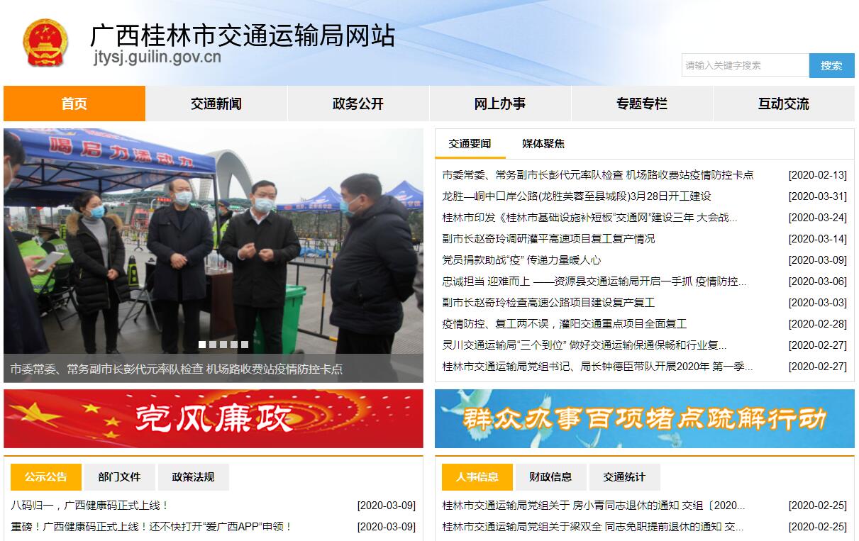 桂林市交通运输局主要职责:(一)贯彻执行国家有关交通运输的方针政策、法律法规,组织起草交通运输规范性文件,拟订交通运输行业有关政策、制度和标准。统筹交通运输行业协调发展,优化交通运输主要通道和重要枢纽节点布局,促进公路、水路交通运输方式融合。(二)拟订全市公路、水路行业发展战略和规划并监督实施,参与编制综合运输体系规划,参与综合交通运输枢纽规划和管理,协调衔接公路、水路交通运输方式标准。指导全市交通运输行业有关体制改革工作。(三)承担全市道路、水路(漓江风景名胜区除外,下同)运输行业事中事后监管责任。指导城乡客运一体化、市辖区城市客运交通及有关设施规划和管理工作,承担出租汽车行业管理工作。负责道路旅客运输、道路货物运输、出租汽车客运、机动车驾驶员培训、机动车维修、水路客货运输有关管理工作。承担渔船检验和监督管理工作。(四)负责提出全市公路、水路固定资产投资规模和方向。提出国家、自治区和市政府财政性资金安排建议并监督实施。按规定负责交通专项资金的拨付和监管。指导协调公路、水路行业利用外资工作,开展对外合作与交流。按规定负责交通运输部门预算,组织实施交通运输行业内部审计工作。(五)承担全市公路、水路建设市场事中事后监管工作。指导全市公路、水路建设工作,组织协调工程建设、工程质量、安全生产监督管理工作。指导公路、水路基础设施的管理和维护。依法负责港口岸线使用管理工作。(六)承担全市交通运输行业安全生产和应急管理工作。按规定组织协调重点物资运输和紧急客货运输。承担国防交通动员有关工作。(七)承担全市交通运输行业统计工作,监测分析交通运输运行情况,发布有关信息。指导公路、水路行业环境保护、科技开发、工程造价和节能减排工作。(八)负责市辖区并指导县(市)交通运输行政执法和队伍建设有关工作。(九)完成市委、市政府交办的其他任务。