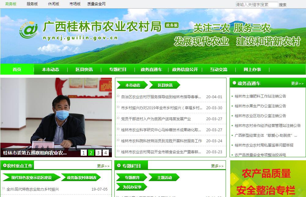 桂林市农业农村局主要职责:(一)研究并组织实施全市“三农”工作的发展战略、中长期规划、重大政策、重大举措。组织开展全市农业农村改革发展重大问题的调查研究。(二)负责提出全市农业地方立法项目的建议,起草有关规范性文件。参与农业行政执法体系建设,指导全市农业综合执法。参与涉农的财税、价格、收储、金融保险、进出口等政策制定。(三)统筹推动发展全市农村社会事业、农村公共服务、农村文化、农村基础设施和乡村治理。协调推进改善农村人居环境。指导农村精神文明和优秀农耕文化建设。指导农业行业安全生产工作。(四)拟订全市深化农村经济体制改革和巩固完善农村基本经营制度的政策并组织实施。负责农民承包地、农村宅基地改革和管理有关工作。牵头负责农村集体产权制度改革,指导农村集体经济组织发展和集体资产管理工作。指导农民合作经济组织、农业社会化服务体系、新型农业经营主体建设与发展。指导农村有关改革试验区建设和美丽乡村建设。(五)指导全市乡村特色产业、农产品加工业、休闲农业发展工作。提出促进大宗农产品流通的建议,培育、保护农业品牌。发布农业农村经济信息,监测分析农业农村经济运行。承担农业大数据和农业农村信息化有关工作。归口管理农业农村相关对外宣传及信息发布工作。(六)负责全市种植业、畜牧业、渔业、农业机械化等农业各产业的监督管理。指导全市农产品生产。组织构建现代农业产业体系、生产体系、经营体系,指导农业标准化生产。组织协调和实施“菜篮子工程”建设。监督管理全市渔政渔港。(七)监督管理全市农产品质量安全。组织开展农产品质量安全监测、追溯、风险评估。会同有关部门组织实施农产品质量安全国家标准。参与制订地方特色农产品安全标准并会同有关部门组织实施。指导全市农业检验检测体系建设。(八)组织全市农业资源综合区划与开发利用。指导农用地、渔业水域以及农业生物物种资源的保护与管理,负责水生野生动植物保护、耕地及永久基本农田质量保护工作。指导全市农产品产地环境管理和农业清洁生产。指导设施农业、生态循环农业、节水农业发展以及农村可再生能源综合开发利用、农业生物质产业发展。牵头管理外来物种。(九)监督管理全市主要农业生产资料和农业投入品。指导农业生产资料市场体系建设。组织兽医医政、兽药药政药检工作,负责执业兽医和畜禽屠宰行业管理。(十)负责全市农业防灾减灾、农作物重大病虫害防治工作。指导动植物防疫检疫体系建设,组织、监督市内动植物防疫检疫,发布疫情并组织扑灭。(十一)负责全市农业投资管理。提出农业投融资体制机制改革建议。组织编制桂林农业投资建设规划,提出农业投资规模和方向、扶持农业农村发展财政项目的建议,承担中央、自治区农业投资建设项目,按规定权限审批农业投资项目,参与农业投资项目资金安排和监督管理。(十二)推动全市农业科技体制改革和农业科技创新体系建设。指导农业产业技术体系和农技推广体系建设,组织开展农业领域的科学研究、成果转化和技术推广。负责农业转基因生物生产加工的安全监督管理和农业植物新品种保护。(十三)指导全市农业农村人才工作。拟订农业农村人才队伍建设规划并组织实施,指导农业教育和农业职业技能开发,指导新型职业农民培育、农业科技人才培养和农村实用人才培训工作。(十四)组织开展农业对外交流合作。拟订全市农业对外开放的发展战略和对策。承办农业涉外事务,组织农业贸易促进和有关技术交流与合作。指导实施有关农业援外及援助项目。(十五)完成市委、市政府交办的其他任务。