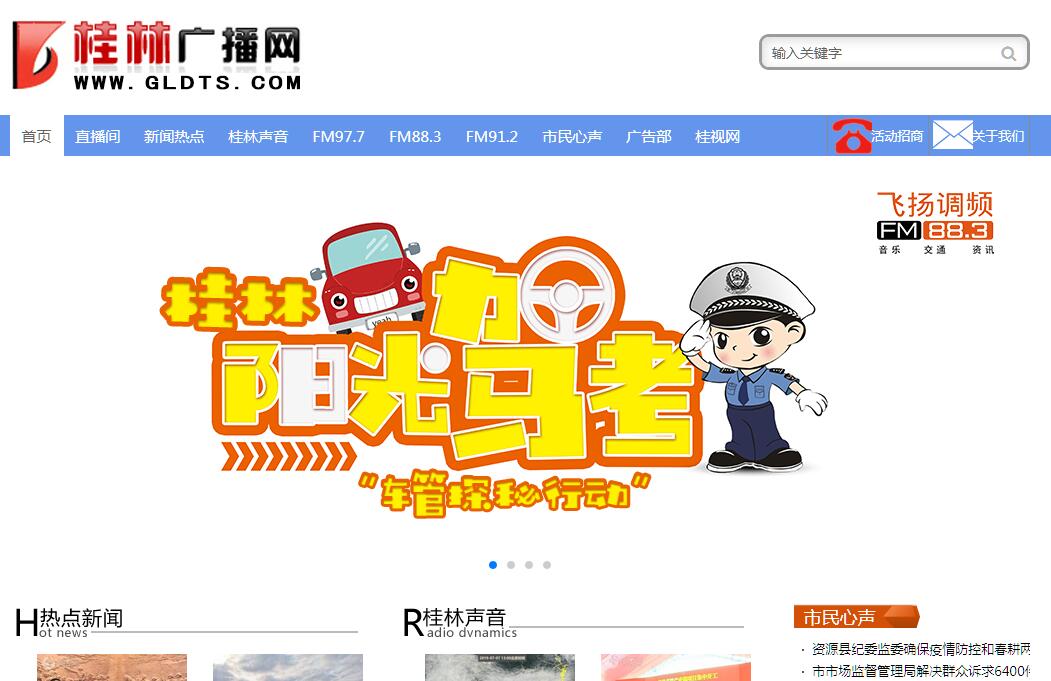 | 网站简介: 桂林广播网由桂林广播电视台融媒体部主办。977城市之声是桂林人民广播电台新闻综合频率,是广播新闻宣传的主阵地,承担着引导舆论、传递信息的功能,是党和政府的喉舌,是联系广大人民群众的桥梁和纽带。 |