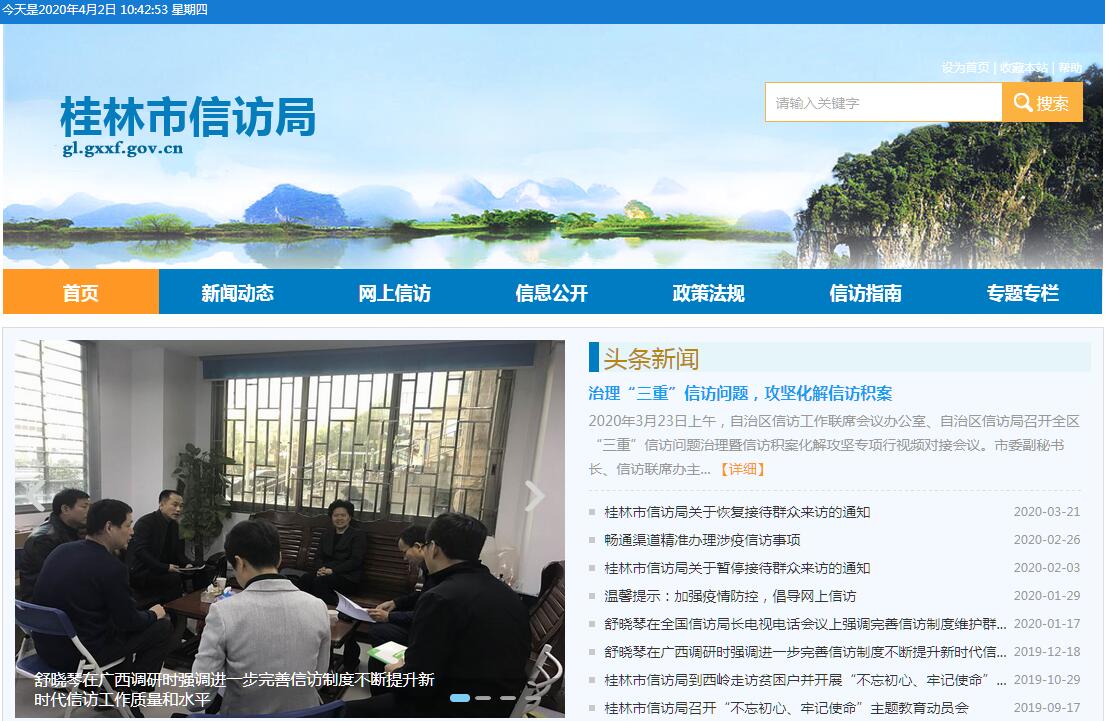 桂林市信访局主要职责:(一)负责处理市内外群众通过信访渠道给市委、市政府及 领导同志的来信来电,接待来访。受理向市政府举报、投诉的行政案件。(二)负责向市委、市政府反映群众来信来电来访中提出的重要建议、意见和问题,综合研判信访信息,开展调查研究,提出完善有关政策、法律法规和解决信访问题的意见和建议。(三)承担督促检查领导同志信访批示件落实情况的责任,承办自治区党委办公厅、自治区政府办公厅、自治区信访局和市 委、市政府领导同志及市委办公室、市政府办公室交办的信访事项。负责向我市各县(市、区)、各部门和单位交办、转办、移送信访事项,督促检查信访事项办理落实情况。(四)承担协调处理群众赴邕进京到市到非接待场所上访的责任,负责组织协调处理跨地区、跨部门、跨行业的信访事项。(五)承担市政府负责的信访事项复查复核日常工作;指导复杂疑难信访事项的听证工作。(六)协调、检查、指导全市信访工作;起草有关信访工作的政策和办法;对信访事项办理过程中存在的问题和不足,提出改进工作和责任追究的意见和建议。(七)组织实施信访问题排查化解工作,完善信访信息汇集分析机制。指导全市信访信息系统建设和应用,组织信访干部教育培训工作。负责协调全市信访工作的宣传和信息发布。(八)承担市处理信访突出问题及群体性事件联席会议的日常工作,督促落实联席会议决定的事项。(九)管理市群众信访服务中心。(十)完成市委、市政府交办的其他任务。