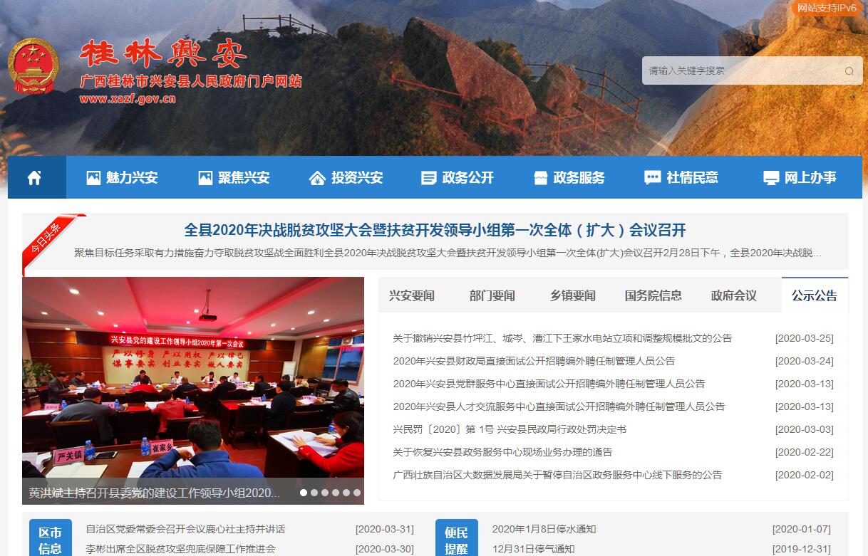 兴安县位于广西东北部,桂林市的北部,地处“湘桂走廊”要冲,是中原文化和岭南文化的交汇之地。全县总面积2348平方公里,下辖6镇4乡,有汉、壮、瑶、苗、回、侗等十七个民族,总人口40万。兴安政通人和,物丰民安,先后荣获全国十大魅力名镇、全国科技进步先进县、广西科学发展十佳县、广西新型城镇化示范县、广西卫生城市、广西首批特色旅游名县等美誉。兴安历史悠久,文化底蕴深厚。秦归零陵县,汉置始安县,唐称临源县、全义县,宋始称兴安县,取“兴旺安定”之意,已有2200余年建县史,是广西境内最古老的县之一。兴安是一片神奇的土地。“兴安高万丈,水往两头流”,湘江北去,漓水南流,长江与珠江水系在这里牵手。华南第一峰猫儿山雄峙五岭。两千多年前,秦始皇征百越、筑灵渠、通河海,让兴安“南连海域、北达中原”,谱写了中华民族大统一的炫丽华章;八十多年前,中国工农红军过湘江、破封锁、话转折,万里长征筑通途,在中华民族伟大复兴的历史征程中写下浓墨重彩的一笔;两次见证和改写中华民族发展历史的重大历程。兴安山川秀美,名胜古迹众多。这里有驰名中外的千古灵渠,被誉为“与长城南北相呼应,同为世界之奇观”,习总书记在2017年4月视察广西时称道“秦代修建的灵渠,将湘江、漓江的源头相连,在运输、灌溉等方面发挥了很大作用,被誉为世界古代水利建筑明珠”;这里有华南第一峰猫儿山,融“泰山之雄、华山之险、庐山之幽、峨嵋之秀”,耸立于丹山翠峰间;这里有驻守三江之口的古秦城遗址,是历代兵家必争之地;这里有唐宋石刻胜绝岭南的“湘南第一洞” 乳洞岩,三洞奇绝;这里有“北雪不渡”、扼“楚粤之咽喉”的古严关,雄震南国;这里还有原生态山水自然环境和现代人文景观完美结合的“AAAAA”级旅游景区乐满地休闲世界、抚慰烈士英灵的红军长征突破湘江烈士纪念碑园等,旅游资源得天独厚。兴安交通便捷,区位优势独特。县城距桂林市区57公里、两江国际机场60公里。国道322线,泉南、兴资高速公路,湘桂铁路、高速铁路纵贯全境。依托高铁枢纽,动车“桂林兴安·灵渠号”从兴安北站始发首府南宁,湖南东安至广州动车组首站经停兴安,与桂林市区实现动车组出行同城化。作为桂北交通的咽喉和枢纽,兴安正以全新的姿态积极融入西进云贵、南下广州、北接长沙的桂粤湘黔四省会“三小时”经济圈。兴安地肥物阜,物产资源丰富。五岭居其二(越城岭、都庞岭),是湘江、漓江两水之源。矿产资源丰富,石灰石、大理石、花岗岩、方解石、钨矿、高岭土等蕴藏量大,品质优良。盛产水稻、柑桔、葡萄、玉米、白果、毛竹等,是全国“矿粉之乡”、“全国产粮大县”、“中国毛竹之乡”、“中国银杏之乡”“全国生猪调出大县”,享有“南方吐鲁番”的美誉。兴安经济繁荣,发展基础敦厚。特别是近年来,在区市党委、政府的正确领导下,新一届县委、政府主动作为,善抓善成,紧紧围绕建设“三个兴安”、实现“七大目标”和创建“三大生态”先进县战略,把方向、定目标,理思路、强措施,抓项目、促投资,转作风、优环境,以坚强的政治定力和不达目的誓不罢休的毅力,在抢抓机遇中坚定信心,在破解难题中凝聚力量,在应对挑战中谋划发展,在浴火重生中奋勇前行,全县经济社会各项事业取得了长足发展。2017年全县地区生产总值完成136.47亿元,固定资产投资完成218.25亿元,财政收入完成12.71亿元,社会消费品零售总额完成45.37亿元,城镇居民人均可支配收入完成32879元,农村居民人均可支配收入完成15926元。2018年,兴安县委、政府正全面贯彻落实党的十九大精神,以及中央和区、市重大决策部署,积极主动融入自治区“双核驱动、三区统筹”发展格局和桂林国际旅游胜地、桂林国家健康旅游示范基地及国家可持续发展议程创新示范区建设,围绕全县地区生产总值增长7.1%以上、财政收入增长5.0%以上、固定资产投资增长8.0%以上的经济社会主要预期目标,坚持打基础、利长远,补短板、强优势,推改革、增动能,以开展招商引资年、园区建设年、农产品电商建设年、旅游营销年、改革推进年、依法治理年等“六个年”活动为抓手,力促经济转型提质增效、社会事业惠及民生、党的建设全面加强,着力推动全县经济高质量发展,为建设生态兴安、文化兴安、富裕兴安,实现“七大目标”,创建“三大生态”先进县,全面建成小康社会而努力奋斗!