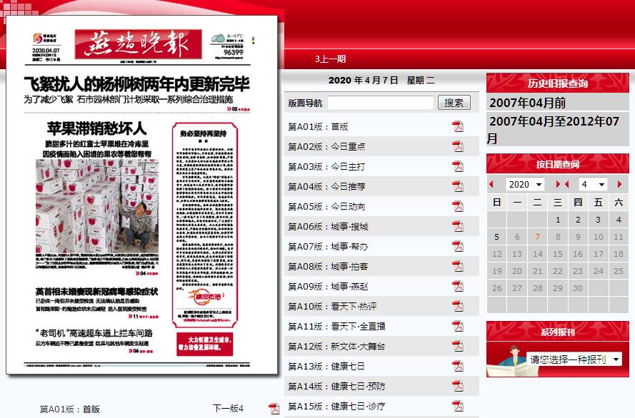 | 网站简介: 燕赵晚报电子版,燕赵晚报多媒体数字报刊平台。《燕赵晚报》是河北省会影响力最大的报刊之一。《燕赵晚报》由石家庄日报社主办,4开24版,创刊于1988年,1992年元旦正式发行(4开4版),是创刊最早的城市晚报。《燕赵晚报》的创刊,是原《石家庄晚报》的复刊,期号接续了原《石家庄晚报》的期号,《石家庄晚报》1989年最后一期是1607期,故《燕赵晚报》创刊号的期号是1608期。《燕赵晚报》以省会石家庄市为主要发行区域,辐射省内主要中等城市,最高发行量35万份。 |
