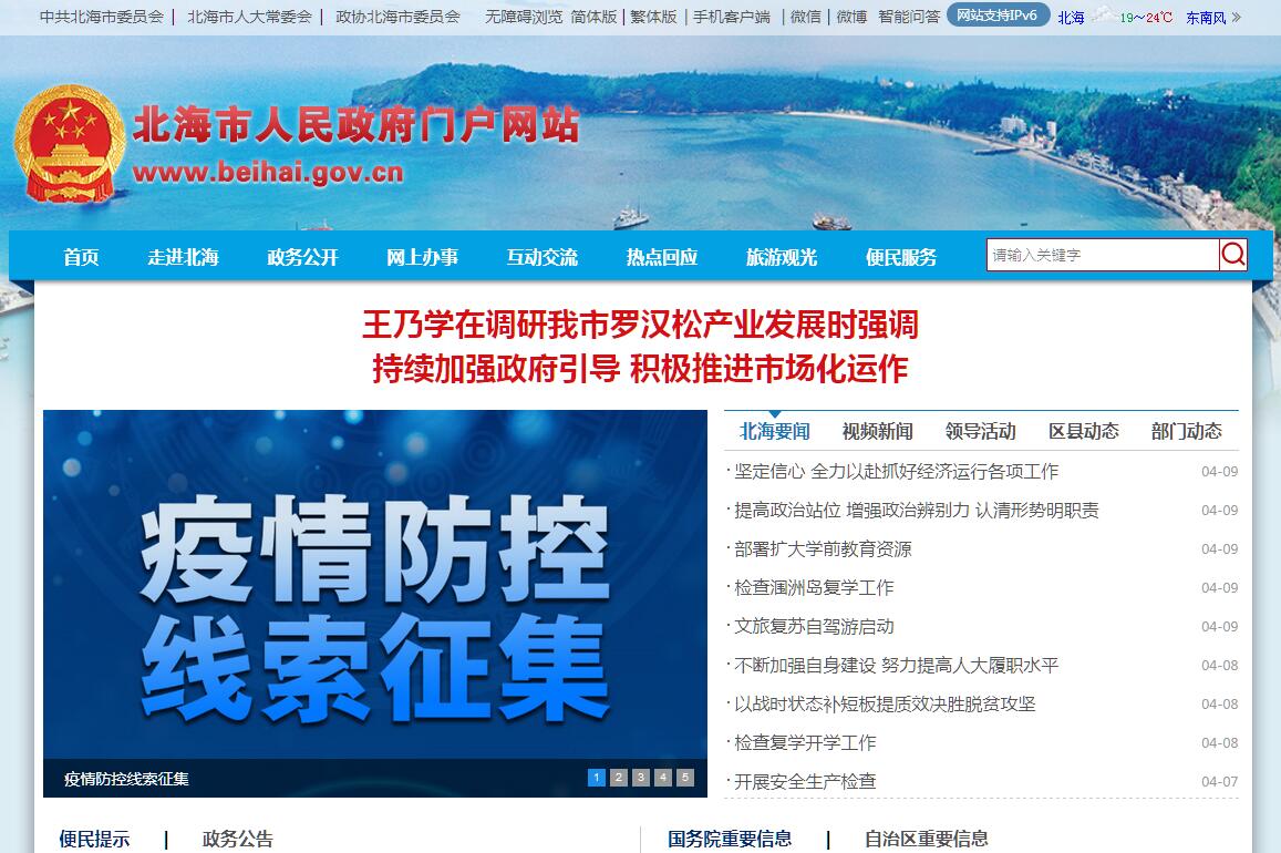 北海,是广西壮族自治区地级市,地处广西壮族自治区南端,北部湾东北岸。西北距首府南宁206公里,东距广东湛江198公里,东南距海南海口市147海里。地势总体呈北高南低,地形平坦开阔;气候属海洋性季风气候,具有典型的亚热带特色;下辖3个区、1个县,总面积3337平方千米;2017年总人口175.42万人。北海是古代“海上丝绸之路”的重要始发港,是国家历史文化名城、广西北部湾经济区重要组成城市。北海区位优势突出,地处华南经济圈、西南经济圈和东盟经济圈的结合部,处于泛北部湾经济合作区域结合部的中心位置,是中国西部地区唯一列入全国首批14个进一步对外开放的沿海城市,也是中国西部唯一同时拥有深水海港、全天候机场、高速铁路和高速公路的城市。2017年,北海市完成地区生产总值1229.84亿元,按可比价计算,较上年增长10.2%。其中,第一产业实现增加值190.54亿元,增长3.7%;第二产业实现增加值668.66亿元,增长10.5%;第三产业实现增加值370.64亿元,增长13.3%。三次产业的结构比例为15.5:54.4:30.1,对经济增长的贡献率分别为6.2%、52.5%、41.3%,人均地区生产总值74378元。2018年11月,入选中国城市全面小康指数前100名。