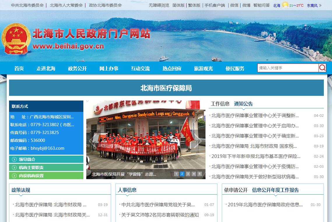 北海市医疗保障局主要职责:(一)贯彻执行国家、自治区和市有关医疗保险、生育保险、医疗救助等医疗保障制度及医药价格的法律法规、方针、政策和标准,组织拟定有关地方性规章草案,制定全市医疗保障事业发展规划、政策和标准,并组织实施和监督检查。(二)组织制定并实施全市医疗保障基金监督管理实施细则,建立健全医疗保障基金风险防控机制。(三)贯彻执行国家、自治区和市医疗保障筹资和待遇政策, 完善动态调整和市、县(区)调剂平衡机制,统筹城乡医疗保障待遇标准,建立健全和筹资水平相适应的待遇调整机制。组织实施长期护理保险制度改革。(四)组织实施和监督全市药品、医用耗材、医疗服务项目、医疗服务设施等医保目录和支付标准,建立动态调整机制,根据自治区部署及时调整医保目录。(五)贯彻落实国家、自治区和市药品、医用耗材价格和医疗服务项目及价格、医疗服务设施收费等政策,建立医保支付医药服务价格合理确定和动态调整机制,推动建立市场主导的社会医药服务价格形成机制,建立价格监测和信息发布制度并组织实施。(六)落实自治区药品、医用耗材的招标采购政策,组织实施药品、医用耗材的招标采购。(七)制定全市定点医药机构协议管理细则并组织实施。推进医疗保障基金支付制度改革,组织实施支付管理办法。建立健全定点医药机构服务评价考核体系和信息发布制度。监督管理纳入医保范围内的医疗服务行为和医疗费用,依法查处医疗保障领域违法违规行为。(八)负责全市医疗保障经办管理、公共服务体系和信息化建设。贯彻执行国家、自治区异地就医管理和费用结算政策。建立健全医疗保障关系转移接续制度。开展医疗保障领域合作交流。(九)负责市、县(区)医疗保险经办机构开展职工基本医疗保险和城乡居民基本医疗保险、生育保险等相关业务。(十)完成市委、市人民政府交办的其他任务。