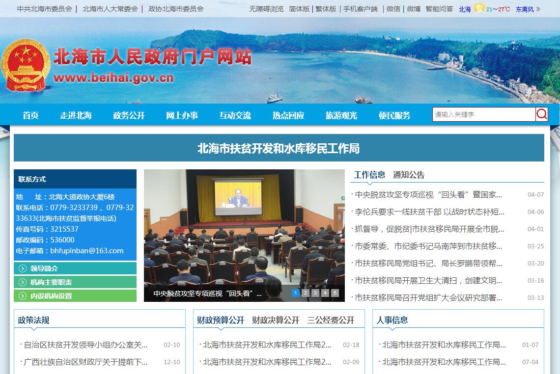 北海市扶贫开发和水库移民工作局贯彻执行党中央、自治区党委和市委关于扶贫开发、水库移民和易地扶贫搬迁工作的方针政策和决策部署,在履行职责过程中坚持和加强党对扶贫开发、水库移民和易地扶贫搬迁工作的集中统一领导。其主要职责是:(一)拟定全市扶贫开发、水库移民和易地扶贫搬迁工作中长期规划,编制全市扶贫开发、水库移民和易地扶贫搬迁移民工作年度计划和项目;制定全市扶贫开发、水库移民和易地扶贫搬迁移民工作管理办法、实施细则并组织实施。(二)负责组织开展扶贫对象精准识别、精准退出工作。负责全市扶贫开发、水库移民和易地扶贫搬迁信息化建设。负责组织全市扶贫开发、水库移民和易地扶贫搬迁状况的监测和统计。(三)负责全市扶贫开发、水库移民和易地扶贫搬迁工作,组织或指导实施经批准的扶贫开发、水库移民和易地扶贫搬迁移民规划和投资计划,组织实施水库移民和易地扶贫搬迁移民安置验收以及监督评估工作。(四)指导全市水库移民后期扶持政策的落实工作;组织开展全市水库移民后期扶持的稽查和检测评估工作。指导县(区)做好原国有农场管辖的移民管理工作。(五)参与拟订扶贫开发、水库移民和易地扶贫搬迁项目和资金的管理办法;会同有关部门提出市级财政扶贫开发、水库移民和易地扶贫搬迁资金投向和分配建议,经批准后组织实施;监督指导财政扶贫资金、水库移民资金的使用及其管理工作;组织开展财政专项扶贫资金绩效评价;会同有关部门开展金融扶贫、资产性收益扶贫。(六)拟定全市扶贫开发、水库移民和易地扶贫搬迁项目管理办法。指导督促扶贫项目库建设、项目动态管理,组织扶贫项目实施及效果评估。(七)负责组织指导全市帮扶干部、贫困地区干部、农村实用技术培训工作。参与实施扶贫对象劳动力转移就业培训、水库移民和易地扶贫搬迁移民培训工作。会同有关部门拟定就业扶贫政策,指导、协调贫困地区劳务经济发展和人力资源开发,组织贫困地区劳务输出。(八)协调、组织社会各界支持、参与扶贫工作,检查、督促落实市直单位定点挂钩帮扶责任制。统筹区内外扶贫协作,开展扶贫对外交流与合作,接受扶贫资助等事项。协助有关部门实施行业扶贫工作。负责指导外资扶贫项目的实施。负责中直、区直单位定点扶持和其他地区对口帮扶北海的组织协调和联络服务工作。(九)负责指导全市水库移民和易地扶贫搬迁移民权益保障及信访稳定工作。负责组织开展扶贫开发成效督查考核、扶贫对象退出评估,开展行业扶贫工作成效考评。(十)完成市委、市人民政府交办的其他任务。