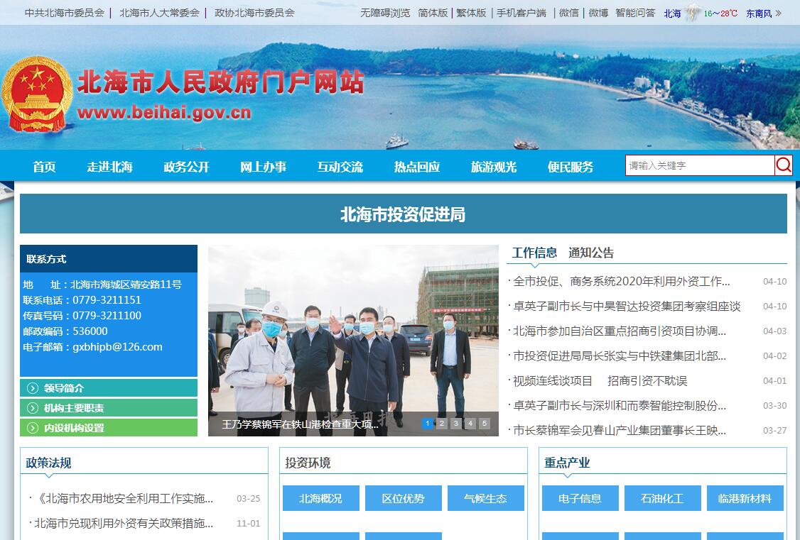 北海市投资促进局主要职责:(一)贯彻落实自治区党委、自治区人民政府和市委、市人民政府关于招商引资工作的决策部署,统筹全市招商引资工作;调查、研究全市招商引资、投资软环境建设工作情况,并向市人民政府提出相关政策建议和工作措施,配合有关部门协调做好投资软环境建设的有关工作。(二)负责对全市招商引资工作进行指导、协调,制定全市年度招商引资工作计划和目标;负责督查、指导、考核市辖县区、经济园区以及市有关部门的招商引资工作。(三)策划、组织开展全市性重大招商引资活动,组织和参加国(境)内外各项招商推介和项目考察、项目洽谈等活动;牵头做好来访客商项目考察、项目洽谈、项目签约和项目跟踪、协调、服务工作。 (四)负责国内区域经济合作工作;负责国内友好城市建立及开展友好往来、经济交流与合作;受市人民政府委托,负责外省市人民政府驻北海办事机构的备案管理和联络工作。(五)负责收集、整理、筛选、发布重大对外招商项目信息,建立和管理全市招商项目数据库;主持或参与重要招商引资项目论证或评估工作,主持或会同市有关部门开展招商引资项目策划包装等工作。(六)负责联系北海异地商(协)会的业务工作,拓展与外地行业商(协)会的友好往来,服务全市招商引资工作。(七)负责组织推进招商引资项目服务工作,负责受理、协调和处理投资者非涉及党政机关公务人员的投诉事项。(八)承担市投资促进委员会办公室的日常工作,承办市委、市人民政府和上级业务部门交办的其他事项。