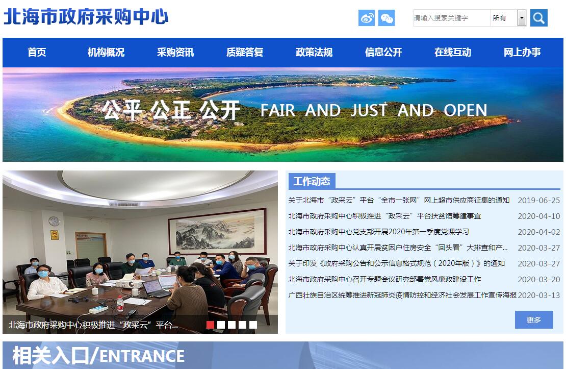 | 网站简介: 北海市政府采购中心,为直属北海市人民政府管理,具有独立事业法人资格、参照国家公务员制度管理的财政全额拨款副处级事业单位。其主要职责是:(一)贯彻执行政府采购法、招标投标法等国家法律法规,协助市财政部门制订我市政府采购有关政策并组织实施;(二)贯彻执行政府采购法律、法规、规章和制度的有关规定,制定本机构内部监督管理制度;(三)根据采购人委托,组织实施自治区政府所公布集中采购目录以内的政府集中采购业务及集中采购目录以外、限额标准以上的分散采购业务;(四)根据采购人委托,组织实施北海市本级政府或其授权部门所公布集中采购目录以内的集中政府采购业务及集中采购目录以外、限额标准以上的分散采购业务;(五)建立和规范政府采购业务操作规程,对本机构组织的政府采购项目执行情况进行监督管理、跟踪问效,并接受委托参与合同验收;(六)接受政府采购监督管理部门的管理和监督,受理供应商的询问或质疑;(七)根据政府采购工作要求,对本机构工作人员及相关采购人、供应商进行业务培训及业务指导。 |