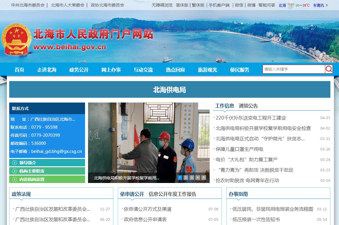| 网站简介: 南方电网广西北海供电局主要职责:负责北海市一县三区的电网规划建设、电网运行管理、电力供应等业务。 |