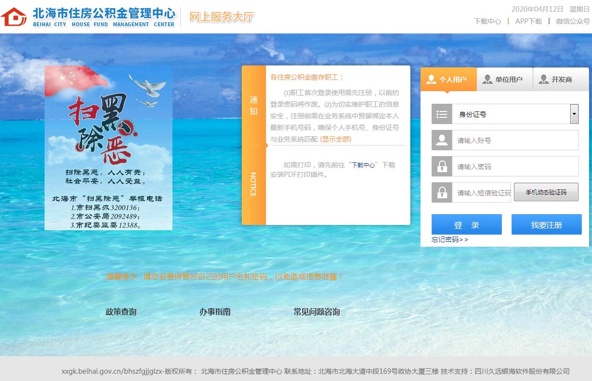 | 网站名称: | 北海住房公积金网上业务大厅 | ||