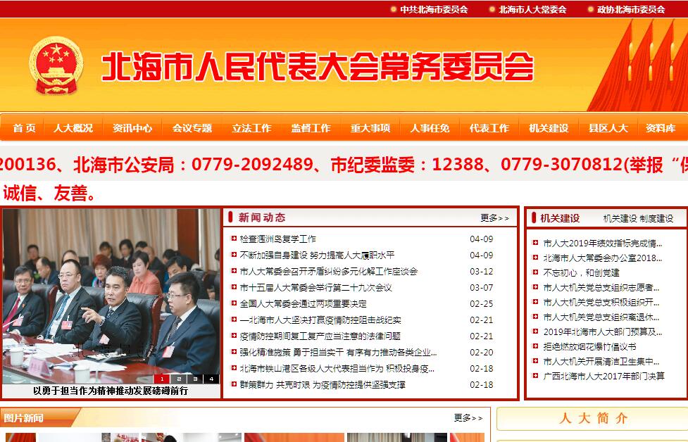 北海市人民代表大会是北海市的地方国家权力机关。其代表是由北海市的一县三区和驻北海人民解放军按《中华人民共和国全国人民代表大会和地方人民代表大会选举法》、《中华人民共和国地方各级人民代表大会和地方各级人民政府组织法》、《中国人民解放军选举全国人民代表大会和县级以上地方各级人民代表大会代表的办法》选举产生,每届任期五年。市人民代表大会每年至少举行一次会议,会议由北海市人民代表大会常务委员会召集。经过五分之一以上的市人民代表大会代表提议,可以临时召集市人民代表大会会议。市人民代表大会会议有三分之二以上的代表出席,始得举行。依照国家宪法和法律的规定,北海市人民代表大会行使下列职权:(一)保证国家宪法、法律、行政法规、全国人民代表大会及其常务委员会和广西壮族自治区人民代表大会及其常委会的决议决定在本行政区域内的遵守和执行,保证全市计划和预算的执行。(二)审查和批准北海市的国民经济和社会发展计划、预算以及它们的执行情况的报告 。(三)讨论、决定北海市的政治、经济、教育、科学、文化、卫生、环境和资源保护、 民政、民族等工作的重大事项。(四)选举并有权罢免北海市人民代表大会常务委员会组成人员。(五)选举并有权罢免北海市人民政府市长、副市长。(六)选举并有权罢免北海市中级人民法院院长,北海市人民检察院检察长;选出或罢免的市人民检察院检察长,须报经区人民检察院检察长提请区人民代表大会常务委员会批准。(七)选举出席广西壮族自治区人民代表大会的代表,并有权罢免市人民代表大会选出的区人民 代表大会代表。(八)听取和审查北海市人民代表大会常务委员会的工作报告。(九)听取和审查北海市人民政府、北海市中级人民法院和北海市人民检察院的工作报告。(十)改变或撤销北海市人民代表大会常务委员会的不适当的决议。(十一)撤销北海市人民政府的不适当的决定和命令。(十二)保护社会主义的全民所有的财产和劳动群众集体所有的财产,保证公民私人所有的合法财产,维护社会秩序,保障公民的人身权利、民主权利和其他权利。(十三)保护各种经济组织的合法权益。(十四)保障少数民族的权利。(十五)保障宪法和法律赋予妇女的男女平等、同工同酬和婚姻自由等各项权利。