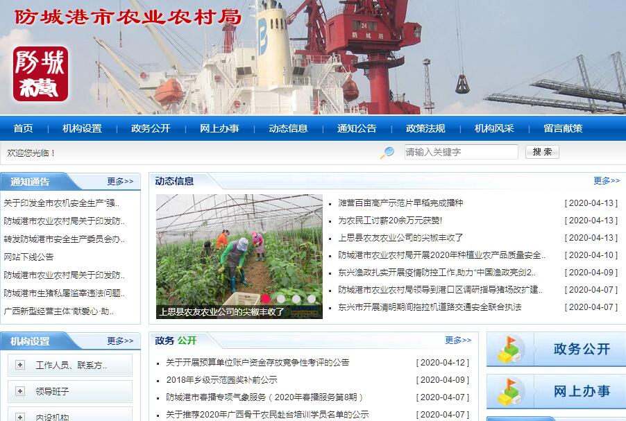 防城港市农业农村局主要职责:(一)研究并组织实施全市“三农”工作的发展战略、中长期规划、重大政策、重大举措。组织开展全市农业农村改革发展重大问题的调查研究。(二)负责提出全市农业地方立法项目的建议,起草有关规章草案和规范性文件。参与农业行政执法体系建设,指导全市农业综合执法。参与涉农的财税、价格、收储、金融保险、进出口等政策制定。(三)统筹推动发展全市农村社会事业、农村公共服务、农村文化、农村基础设施和乡村治理。协调推进改善农村人居环境。指导农村精神文明和优秀农耕文化建设。负责农业行业安全生产相关工作。(四)负责落实深化农村经济体制改革和巩固完善农村基本经营制度的政策。负责农民承包地、农村宅基地改革和管理有关工作。牵头负责农村集体产权制度改革,指导农村集体经济组织发展和集体资产管理工作。指导农民合作经济组织、农业社会化服务体系、新型农业经营主体建设与发展。指导农村有关改革试验区建设和美丽乡村建设。(五)指导全市乡村特色产业、农产品加工业、休闲农业发展工作。提出促进大宗农产品流通的建议,培育、保护农业品牌。发布农业农村经济信息,监测分析农业农村经济运行。承担农业大数据和农业农村信息化有关工作。归口管理农业农村相关对外宣传及信息发布工作。(六)负责全市种植业、畜牧业、渔业、农业机械化等农业各产业的监督管理。指导全市农产品生产。组织构建现代农业产业体系、生产体系、经营体系,指导农业标准化生产。监督管理全市远洋渔业和渔政渔港,参与国家渔业维权护渔。(七)监督管理全市农产品质量安全。组织开展农产品质量安全监测、追溯、风险评估。会同有关部门组织实施农产品质量安全国家标准。参与制订广西特色农产品安全标准并会同有关部门组织实施。指导全市农业检验检测体系建设。(八)组织全市农业资源综合区划与开发利用。指导农用地、渔业水域以及农业生物物种资源的保护与管理,负责水生野生动植物保护、耕地及永久基本农田质量保护工作。指导市农产品产地环境管理和农业清洁生产。指导设施农业、生态循环农业、节水农业发展以及农村可再生能源综合开发利用、农业生物质产业发展。牵头管理外来物种。(九)监督管理全市主要农业生产资料和农业投入品。指导农业生产资料市场体系建设。组织兽医医政、兽药药政药检工作,负责执业兽医和畜禽屠宰行业管理。(十)负责全市农业防灾减灾、农作物重大病虫害防治工作。指导动植物防疫检疫体系建设,组织、监督区内动植物防疫检疫,发布疫情并组织扑灭。(十一)负责全市农业投资管理。提出农业投融资体制机制改革建议。组织编制市农业投资建设规划,提出农业投资规模和方向、扶持农业农村发展财政项目的建议,承担中央、自治区农业投资建设项目,参与农业投资项目资金安排和监督管理。(十二)推动全市农业科技体制改革和农业科技创新体系建设。指导农业产业技术体系和农技推广体系建设,组织开展农业领域的科学研究、成果转化和技术推广。负责农业转基因生物安全监督管理和农业植物新品种保护。(十三)指导全市农业农村人才工作。拟订农业农村人才队伍建设规划并组织实施,指导农业教育和农业职业技能开发,指导新型职业农民培育、农业科技人才培养和农村实用人才培训工作。(十四)组织开展农业对外交流合作。参与拟订全市农业对外开放的发展战略和对策。承办农业涉外事务,组织农业贸易促进和有关技术交流与合作。指导实施有关农业援外及援防城港市项目。(十五)完成市委、市人民政府交办的其他任务。