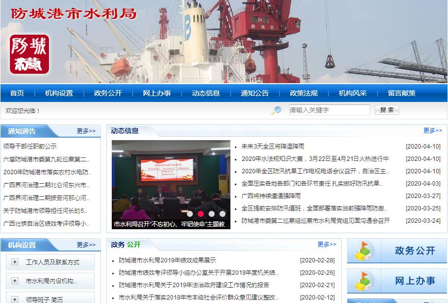 防城港市水利局主要职责:(一)负责保障全市水资源的合理开发利用。贯彻执行国家法律法规,拟订全市水利发展规划和措施,起草水利方面的规范性文件并组织实施,组织编制全市水资源综合规划、重要江河流域综合规划等重大水利规划。(二)负责全市生活、生产经营和生态环境用水的统筹和保障。组织实施最严格水资源管理制度,实施全市水资源的统一监督管理,拟订全市水中长期供求规划、水量分配方案并监督实施。负责重要区域以及重大水利工程的水资源调度,组织实施水资源论证制度,指导开展水资源有偿使用工作。指导水利行业供水和乡镇供水工作。(三)拟订全市水利工程建设有关规定并组织实施,负责提出全市水利固定资产投资规模、方向、具体安排建议并组织指导实施,按市人民政府规定权限审核相关固定资产投资项目,提出中央、自治区和市水利资金安排建议并负责项目实施的监督管理。(四)指导全市水资源保护工作。组织编制并实施全市水资源保护规划。指导饮用水水源保护有关工作,指导地下水开发利用和地下水资源管理保护。组织指导地下水超采区综合治理。负责水文水资源信息的收集工作。(五)负责全市节约用水工作。拟订全市计划用水和节约用水措施,组织编制节约用水规划并监督实施,组织拟订有关标准。组织实施用水总量控制等管理制度,指导和推动节水型社会建设工作。(六)指导全市水利设施、水域及其岸线的管理、保护与综合利用,组织指导全市水利基础设施建设。指导市内重要江河的治理、开发和保护,指导全市河道生态保护与修复、河流生态流量水量管理以及河流水系连通工作,指导、监管全市河道采砂管理工作。(七)指导监督全市水利工程建设与运行管理。组织提出、协调落实有关政策措施,指导监督工程安全运行,指导监督病险水库、水闸、江河(海)堤防的除险加固,对中型以上水库蓄水、调洪提出指导性意见,负责直属水库工程运行管理。(八)负责全市水土保持工作。拟订全市水土保持规划并监督实施,组织实施水土流失的综合防治、监测预报并定期公告。负责建设项目水土保持监督管理工作,指导国家、自治区和市重点水土保持建设项目的实施。负责相关行政审批事项的事中事后监管。(九)指导全市农村水利工作。组织开展大中型灌排工程建设与改造。指导农村饮水安全工程建设管理工作,指导节水灌溉有关工作。指导农村水利改革创新和社会化服务体系建设。指导全市农村水能资源开发、小水电改造和水电农村电气化工作。(十)负责全市重大涉水违法事件的查处,协调跨县(市、区)水事纠纷,指导水政监察和水行政执法。组织开展水利行业质量监督工作。依法负责水利行业安全生产工作,组织指导水库、水电站等水利工程的安全监管。组织指导全市水利建设市场的监督管理和水利建设市场信用体系建设,组织实施水利工程建设的监督。(十一)指导全市水利科技工作。负责水利科学技术管理工作,组织开展水利行业质量技术监督工作。(十二)承担全市全面推行河长制相关工作。承担市河长制办公室的日常工作,组织指导全市河长制实施和监督考核。督促落实市河长会议议决事项和市总河长、河长交办的其他工作。办理国际河流有关涉外事务。(十三)负责落实全市综合防灾减灾规划相关要求,组织编制全市洪水干旱灾害防治规划和防护标准并指导实施。承担水情旱情监测预警工作。组织编制全市重要江河和重要水工程的防御洪水、抗御旱灾调度及应急水量调度方案,按程序报批并组织实施。承担防御洪水应急抢险的技术支撑工作,承担台风防御期间重要水工程调度工作。(十四)完成市委、市人民政府交办的其他任务。
