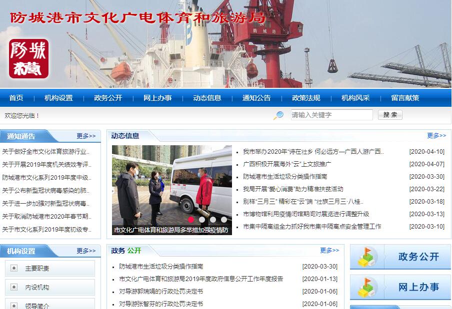 防城港市文化广电体育和旅游局贯彻落实党中央和自治区党委、市委关于文化、广电、体育和旅游工作的方针政策和决策部署,在履行职责过程中坚持和加强文化、广电、体育和旅游工作的集中统一领导。其主要职责是:(一)贯彻执行党的关于文化、广电、体育和旅游方面的方针政策,研究拟订全市文化、广电、体育和旅游业发展的政策措施,起草文化广电体育和旅游有关规范性文件。(二)统筹规划全市文化事业、文化产业、广播电视、体育事业和旅游业发展,拟订发展规划并组织实施和监督检查,优化配置文化广电体育旅游资源,加强业态整合,推动文化广电体育和旅游融合发展,指导、推进文化、广电、体育和旅游领域的体制机制改革。统筹跨境旅游合作区、边境旅游试验区工作。负责推进全市广播电视与新媒体新技术新业态融合发展,推进广电网与电信网、互联网三网融合。(三)管理全市性重大文化体育活动,指导全市文化、广电、体育和旅游重点设施、重大项目建设。组织全市旅游整体形象推广,促进文化产业和旅游产业对外合作和国内外市场推广,拟订旅游市场开发计划并组织实施。指导和推进全域旅游、特色旅游、乡村旅游、红色旅游。指导、管理全市文化、广电、体育和旅游对外及对港澳台交流、合作和宣传、推广工作。(四)指导、管理全市文艺事业,指导艺术创作生产,扶持体现社会主义核心价值观、具有导向性代表性示范性的文艺作品,推动各门类艺术、各艺术品种发展。(五)负责推进全市文化、广电、体育和旅游领域的公共服务体系建设,深入实施文化、广电、体育和旅游惠民工程,统筹推进文化广电体育基本公共文化服务标准化、均等化和旅游公共服务标准化。(六)指导、推进文化、广电、体育和旅游科技创新发展,推进全市文化广电体育和旅游行业信息化、标准化建设,指导行业职业教育工作。(七)负责全市非物质文化遗产保护,推动非物质文化遗产传承、普及、弘扬和振兴。统筹规划全市文物、博物馆事业发展,组织协调文物资源调查,文物保护和考古工作,文物资源资产管理、合理利用和文物安全工作,指导全市博物馆、文物管理机构业务建设。(八)统筹规划全市文化、广电、体育和旅游产业,组织实施文化、广电、体育和旅游资源普查、挖掘、保护和利用工作。促进文化、广电、体育和旅游与相关产业融合发展。(九)指导全市文化、广电、体育和旅游领域的市场发展,对文化广电体育和旅游领域的市场经营进行行业监管,推进文化广电体育和旅游行业信用体系建设,依法规范市场。协调和指导全市假日旅游工作。负责文化、广电、体育和旅游系统安全监督管理工作。指导、监督全市文化和旅游市场综合执法工作。组织查处文物、广播电视、电影、旅游等市场的违法行为,组织查处重大违法违规行为,维护市场秩序。负责相关行政审批事项的事中事后监管。(十)指导全市电视剧行业发展和电视剧创作生产。监督管理、审查全市广播电视节目、网络视听节目和公共视听载体播放的视听节目的内容和质量。指导、监管广播电视广告播放。指导实施广播电视节目评价工作。(十一)组织拟订全市广播电视和网络视听科技发展规划,组织实施广播电视和网络视听科技发展规划、政策和行业技术标准,并进行监督检查。负责对全市广播电视节目传输覆盖、监测和安全播出进行监管,指导、推进全市的国家应急广播体系建设。负责广播电视节目的进口、收录和管理。(十二)负责推行全民健身计划,指导和推进各体育协会。监督实施国家体育锻炼标准,推动国民体质监测和社会体育指导工作队伍制度建设,指导公共体育设施建设,负责对公共体育设施的监督管理。负责体彩公益金中安排于本市的体育转移支付资金的使用管理。(十三)统筹规划全市竞技体育发展,设置体育运动项目,指导协调体育训练和体育竞赛,指导运动队伍建设,协调运动员社会保障工作,组织、协调、监督体育运动中的反兴奋剂工作。统筹规划青少年体育发展,指导和推进青少年体育工作。(十四)完成市委、市人民政府交办的其他任务。