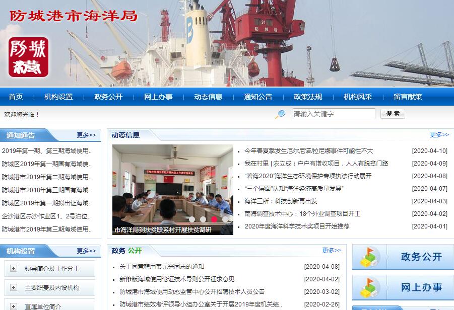 防城港市海洋局贯彻落实党中央和自治区党委、市委关于海洋工作的方针政策和决策部署,在履行职责过程中坚持和加强党对海洋工作的集中统一领导。其主要职责是:(一)负责监督实施海洋战略规划,推动海洋经济发展。组织拟订全市海洋事业发展规划,会同有关部门拟订全市海洋经济发展、海洋事业发展、海岸带综合保护利用、海洋功能区等规划和政策并监督实施。负责对海洋事务的综合协调管理,协调各涉海部门、行业的海洋开发活动。参与处理涉外海洋事务。(二)推动海洋综合管理领域科技发展。制订并实施海洋综合管理领域科技创新发展和人才培养战略、规划和计划。组织开展全市海洋科学调查,配合制定涉海技术标准、规程规范并监督实施。组织实施重大科技工程及创新能力建设,参与海洋综合管理信息化和信息资料的公共服务。开展海洋综合管理对外交流合作。(三)依照规定负责有关行政复议,起草有关海洋资源管理工作的规范性文件草案。受理海洋违法行为举报,查处海洋违法案件。负责相关行政审批事项的事中事后监管。(四)承担海洋经济运行监测、评估及信息发布的职责。组织实施全市海洋经济和社会发展的统计、核算工作。会同有关部门提出优化全市海洋经济结构、调整产业布局的建议。(五)负责海域使用和海岛保护利用管理,优化海域海岛开发利用秩序。组织拟订海洋功能区划、海岛保护规划并监督实施。负责实施海域和海岛区划规划制度、用海用岛相关制度、海域和无居民海岛有偿使用制度。负责监督管理海域和无居民海岛使用。负责海域行政界线、大陆海岸线的勘定和管理工作。负责实施全市海域海岛使用论证、评估和动态监视监测工作。(六)参与实施海洋生态、海域海岸带和海岛修复政策、制度、规划、标准,配合实施海洋生态红线制度、海洋生态修复有关重大工程。指导基层海洋生态修复工作。(七)负责海洋观测预报、生态预警监测和防灾减灾体系建设,拟订海洋观测预报政策和制度并监督实施。组织开展海洋灾害预警报和海洋自然灾害影响评估,参与重大海洋灾害应急处置。拟订海域、海岸带和海岛用途管制的制度规范。(八)依法维护国家海洋权益,会同有关部门组织研究维护海洋权益的政策、措施,协助在管辖海域实施定期维权巡航执法制度。(九)承办市委、市人民政府交办的其他任务。
